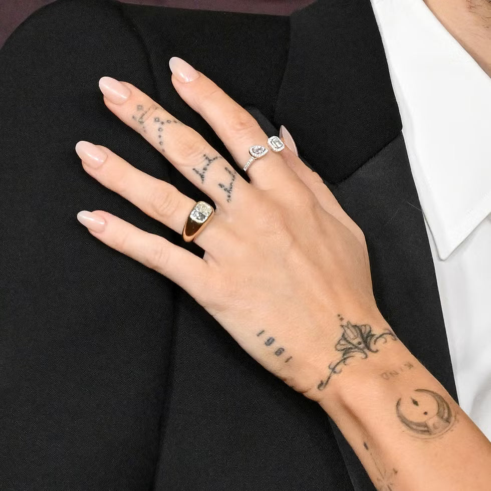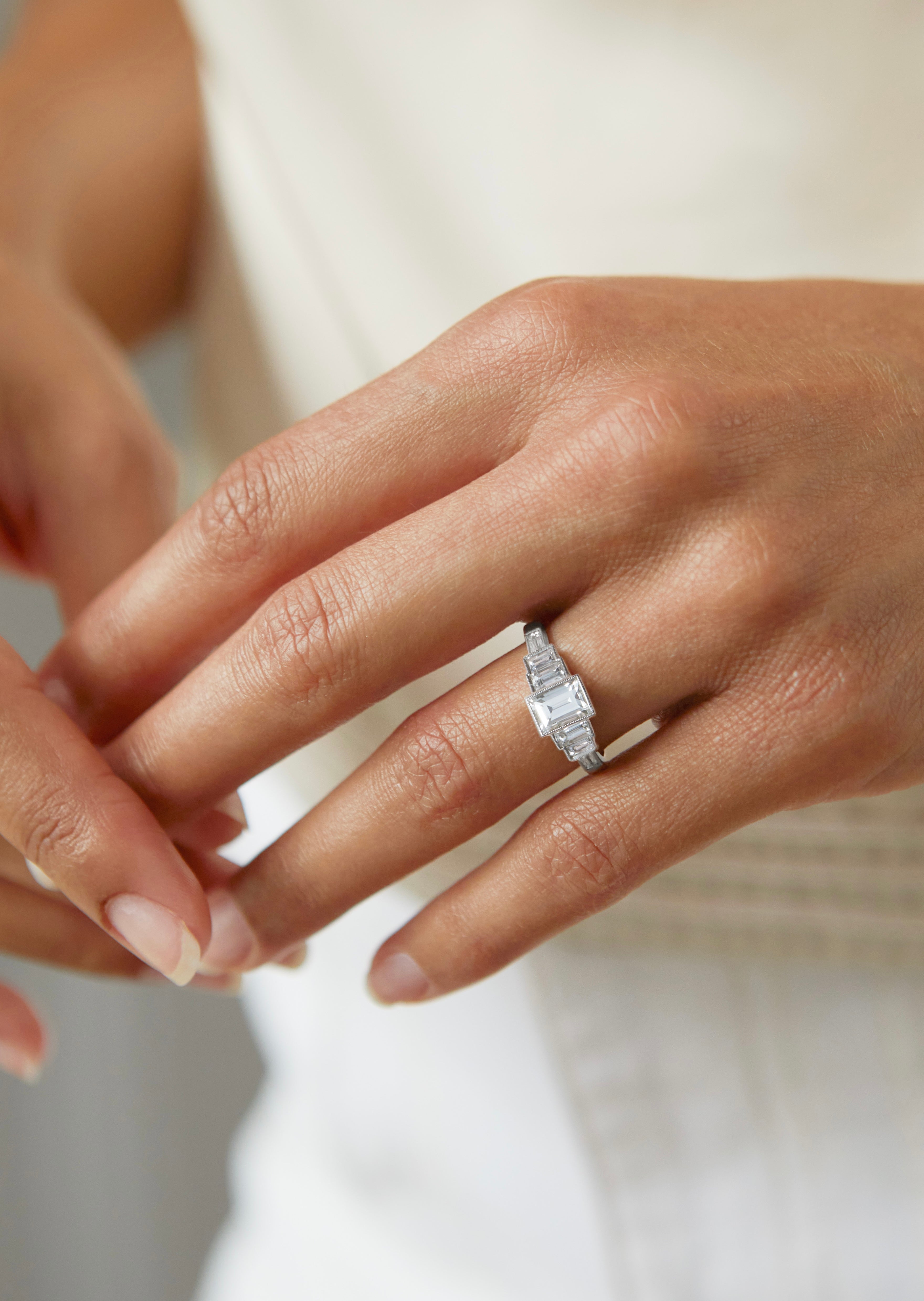 The band itself is becoming a design statement. Rather than a simple shank plus stone formula, designers are exploring softened signets, undulating curves, melted textures and sculptural forms inspired by early modernist jewellery. Dua Lipa’s engagement ring from Callum Turner embodies this movement. Her ring shows how a minimal setting can transform a diamond ring into a true sculpture. It feels pure, sophisticated and timeless, yet modern enough to stand apart.