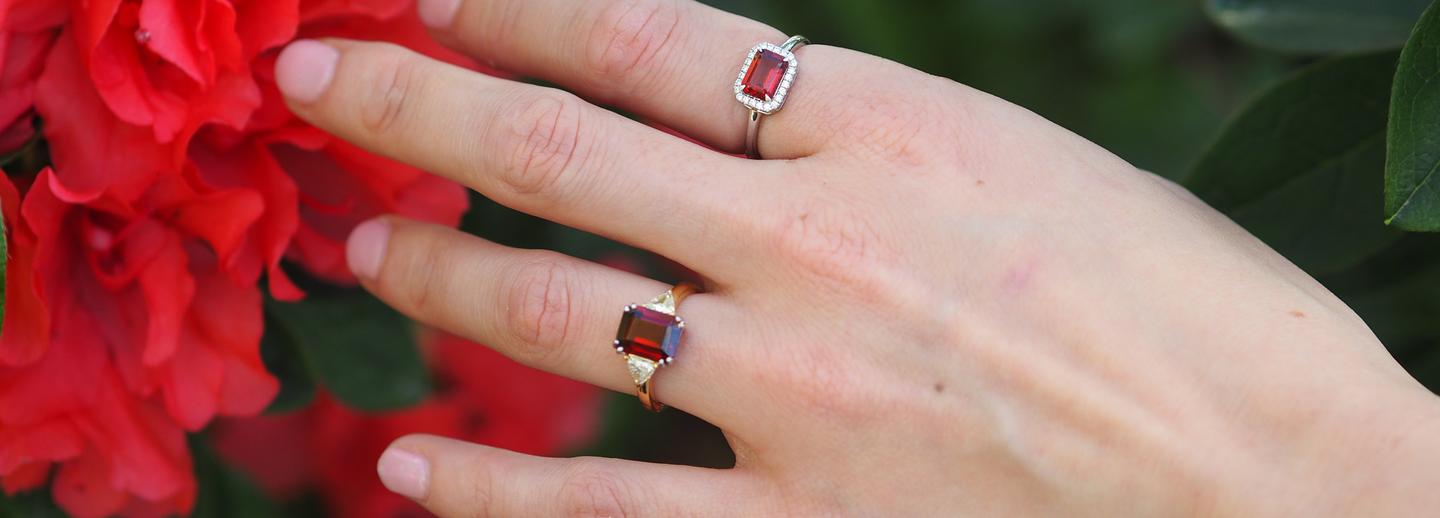 Discover responsibly sourced and customisable Garnet rings starting at £1,250, the perfect choice for an engagement ring or a special occasion.