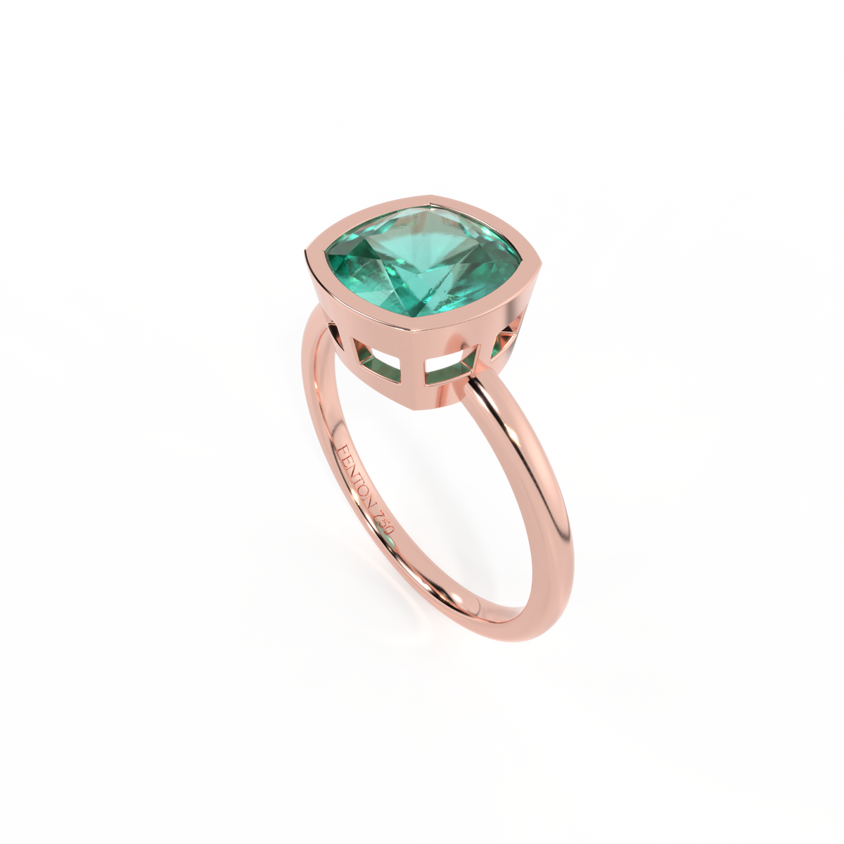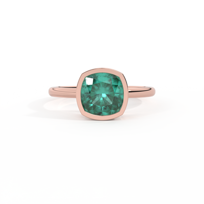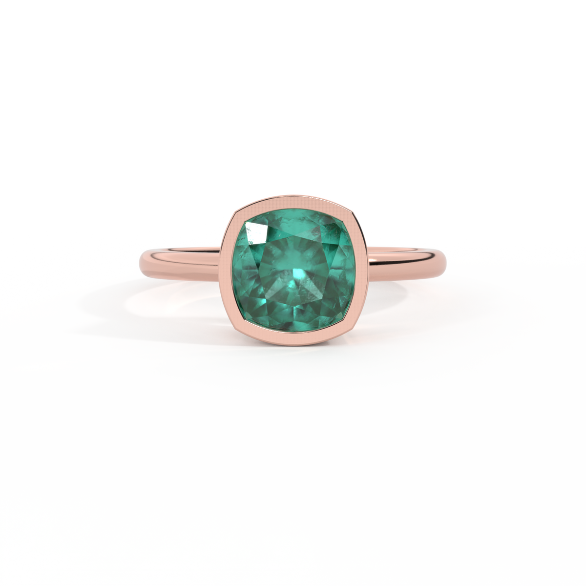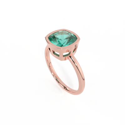 Bezel Cushion Emerald 18K Rose Gold Ring