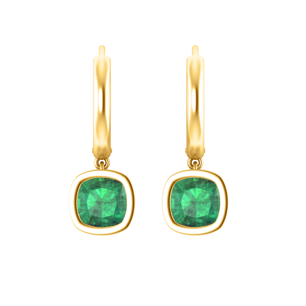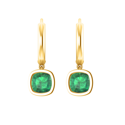 Bezel Drop Cushion Cut Emerald 18K Yellow Gold Earrings