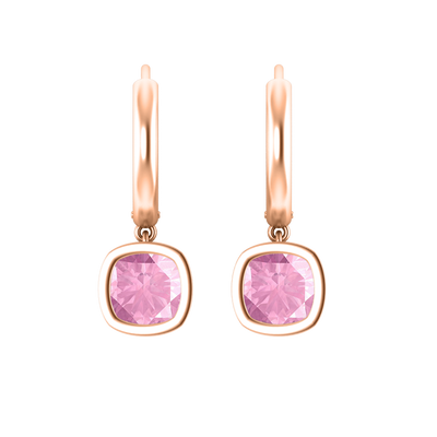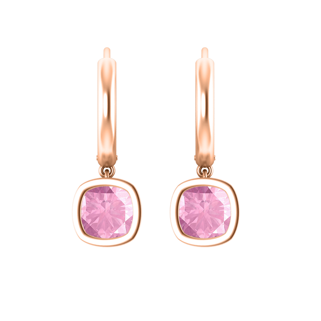 Bezel Drop Cushion Cut Pink Sapphire 18K Rose Gold Earrings