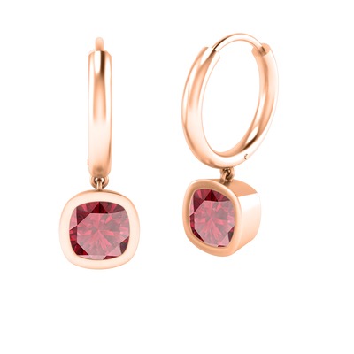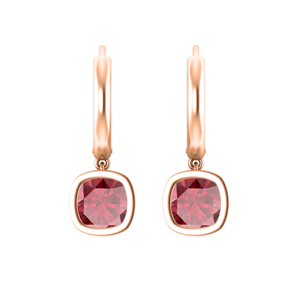 Bezel Drop Cushion Cut Ruby 18K Rose Gold Earrings