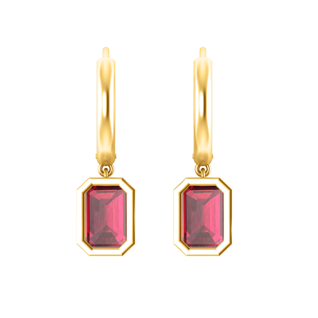 Bezel Drop Emerald Cut Ruby 18K Yellow Gold Earrings
