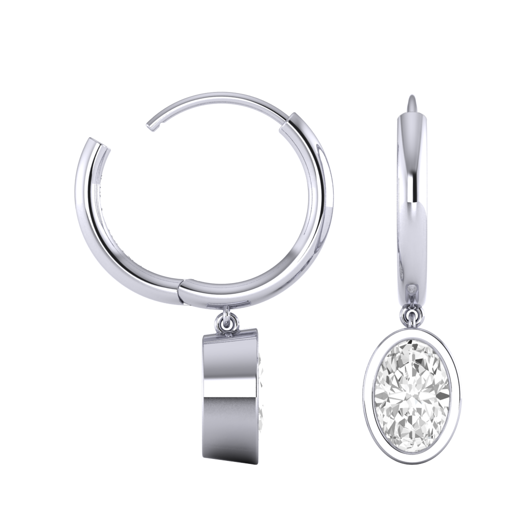 Bezel Drop Oval Cut Solar Diamond 18K White Gold Earrings