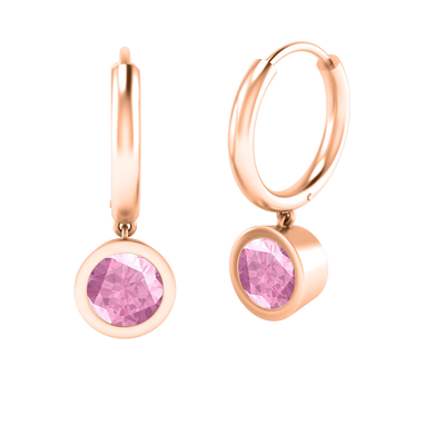 Bezel Drop Round Cut Pink Sapphire 18K Rose Gold Earrings