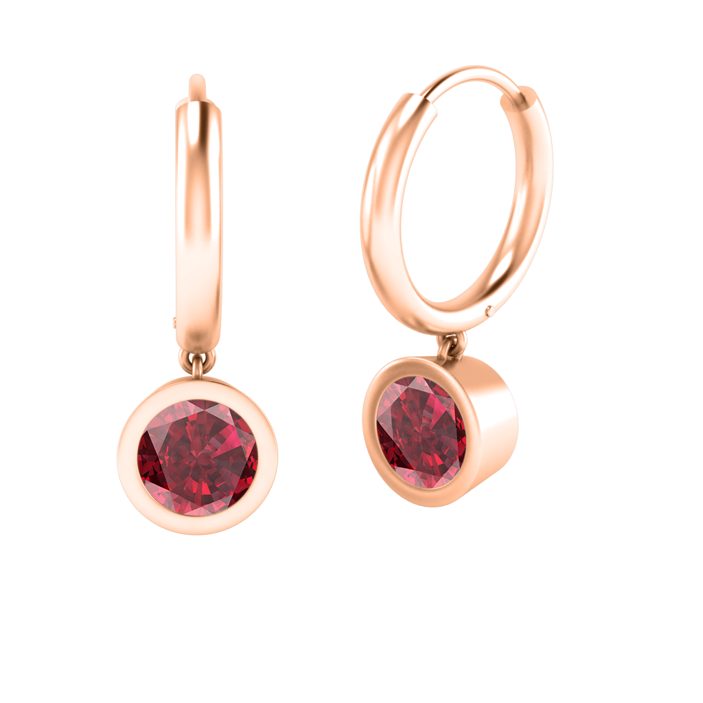 Bezel Drop Round Cut Ruby 18K Rose Gold Earrings