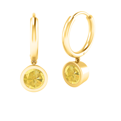Bezel Drop Round Cut Yellow Sapphire 18K Yellow Gold Earrings