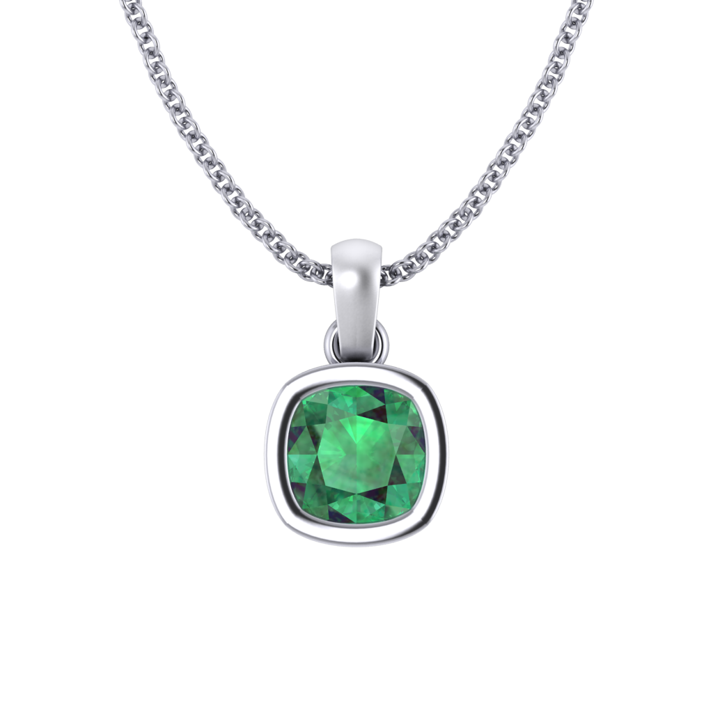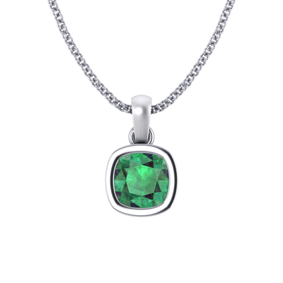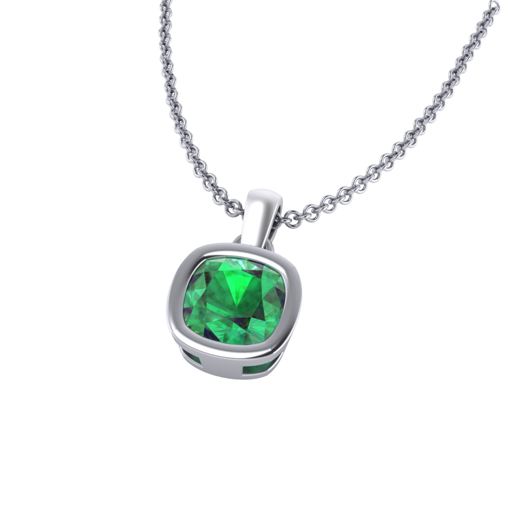 Bezel Cushion Cut Emerald 18K White Gold Pendant Necklace