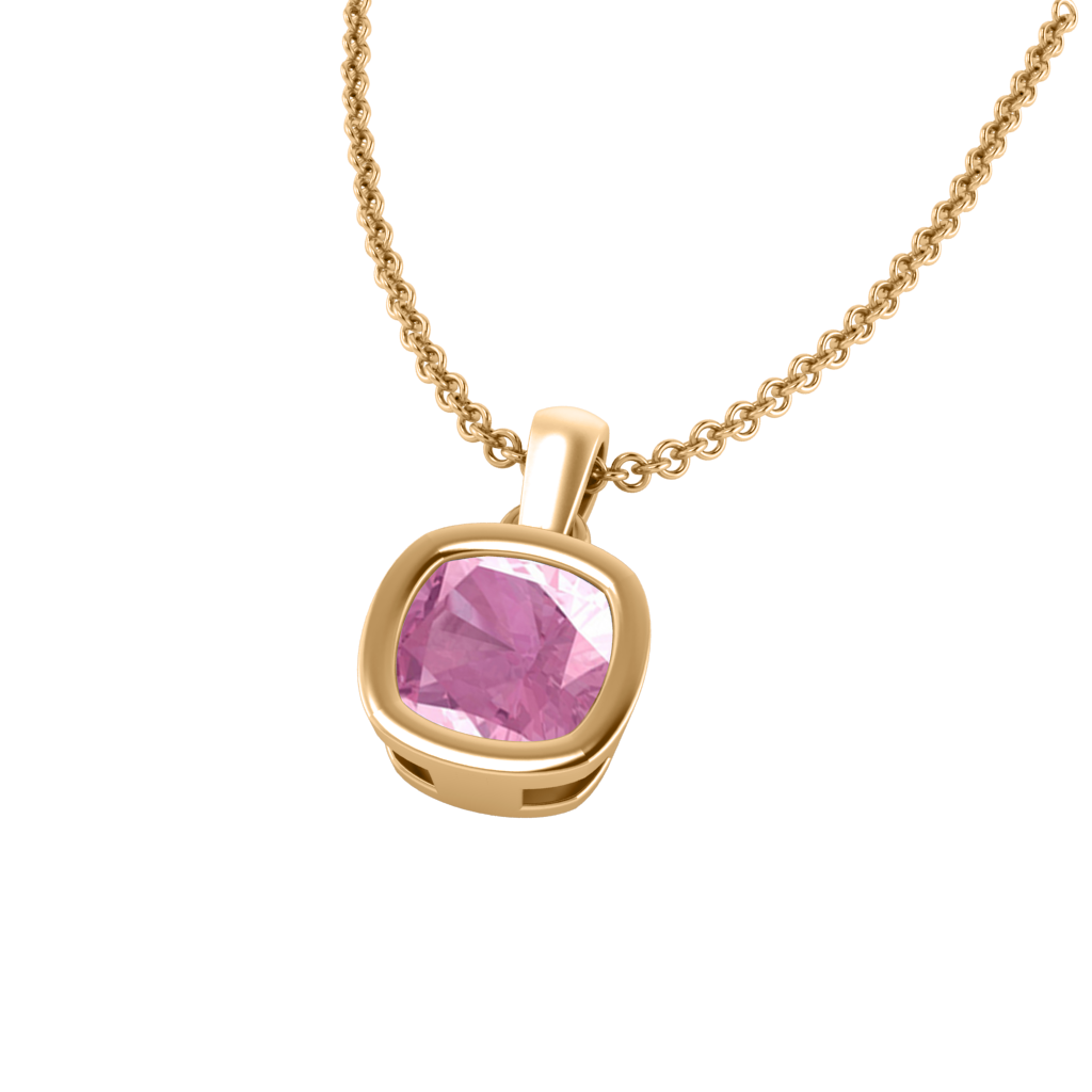 Bezel Cushion Cut Pink Sapphire 18K Yellow Gold Pendant Necklace