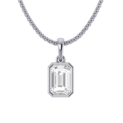 Bezel Emerald Cut Solar Diamond 18K White Gold Pendant Necklace