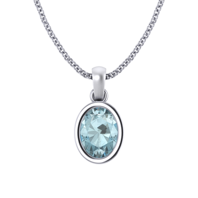 Bezel Oval Cut Aquamarine 18K White Gold Pendant Necklace