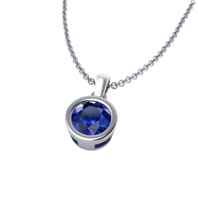 Bezel Round Cut Blue Sapphire 18K White Gold Pendant Necklace