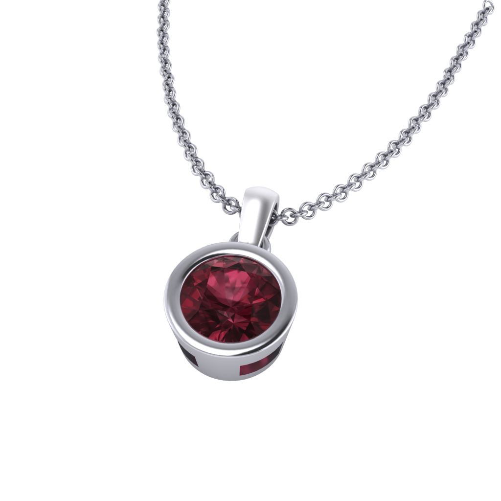 Bezel Round Cut Garnet 18K White Gold Pendant Necklace
