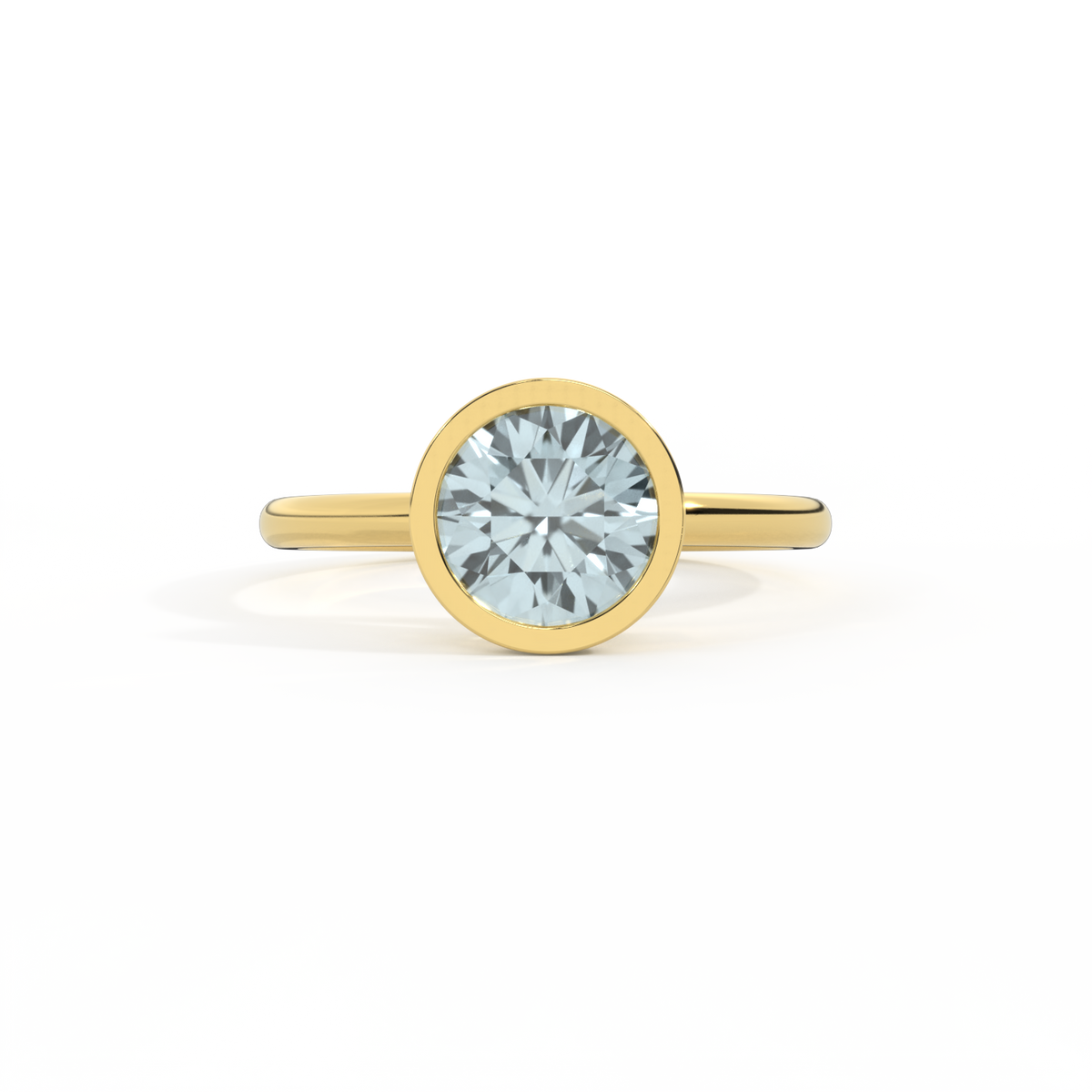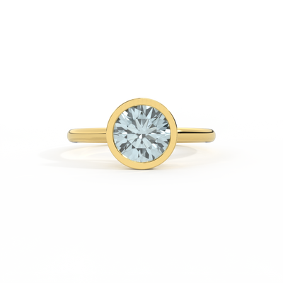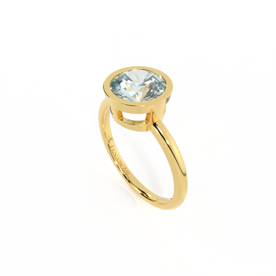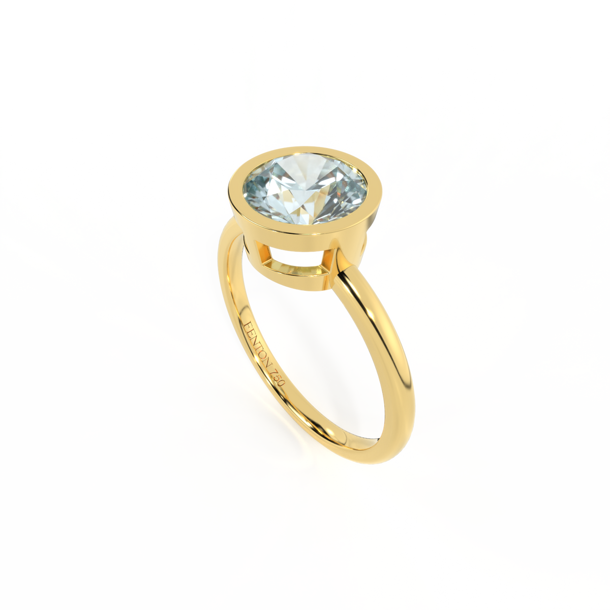 Bezel Round Aquamarine 18K Yellow Gold Ring
