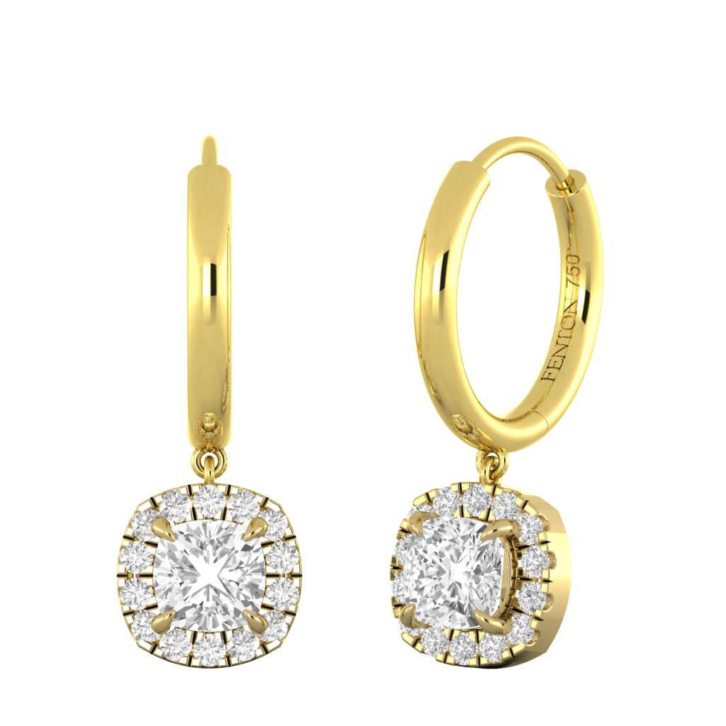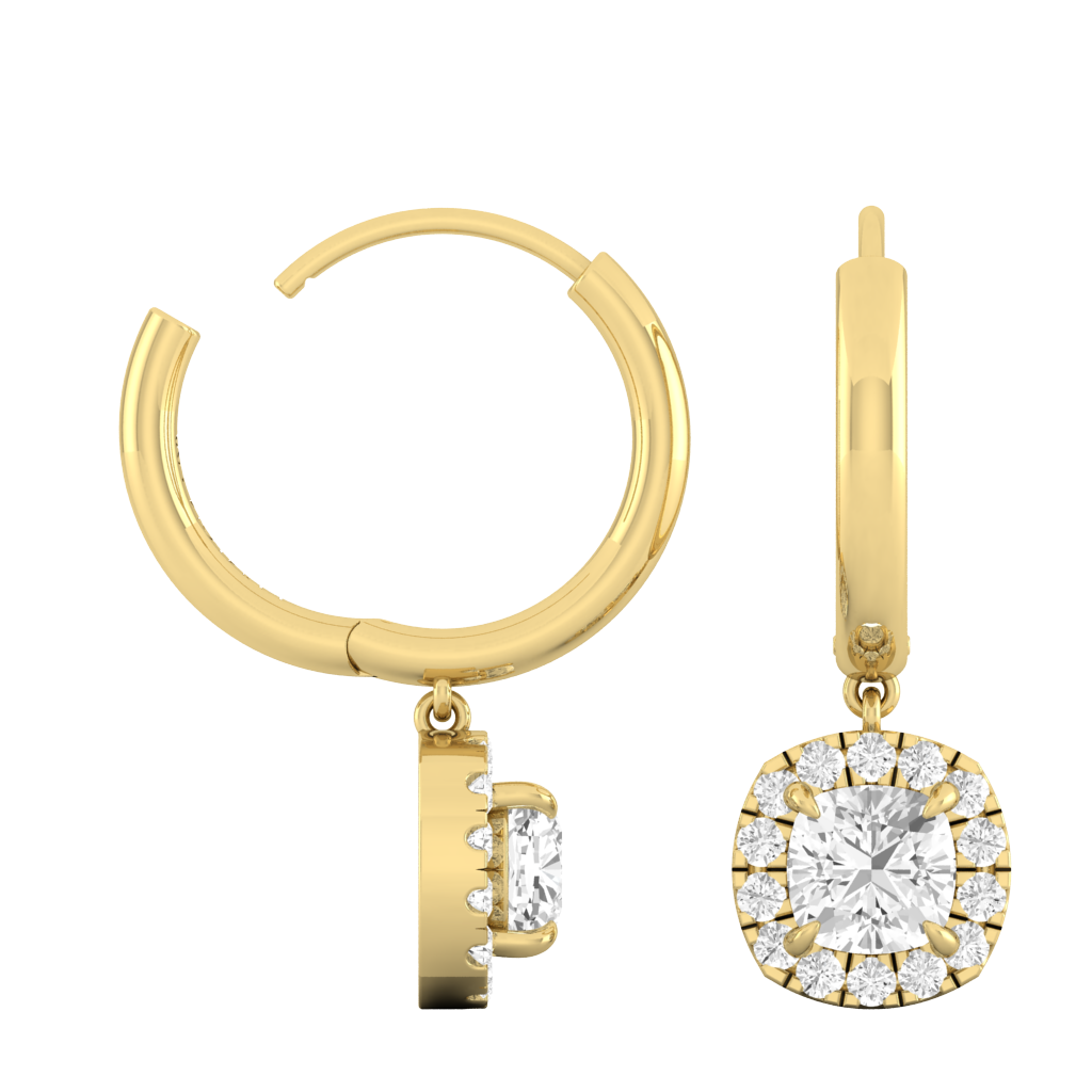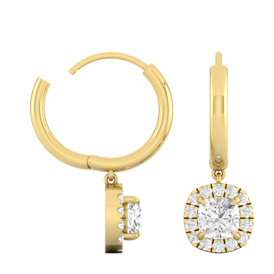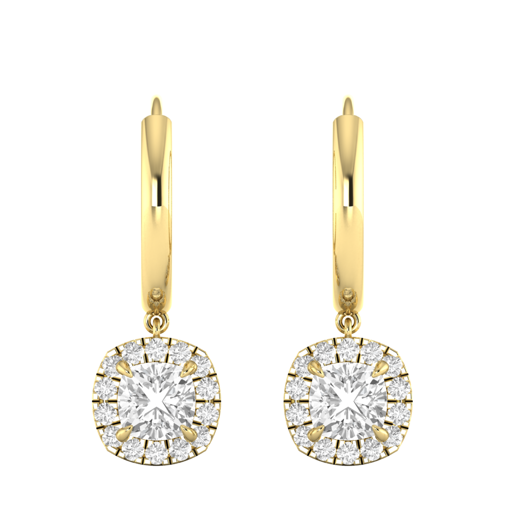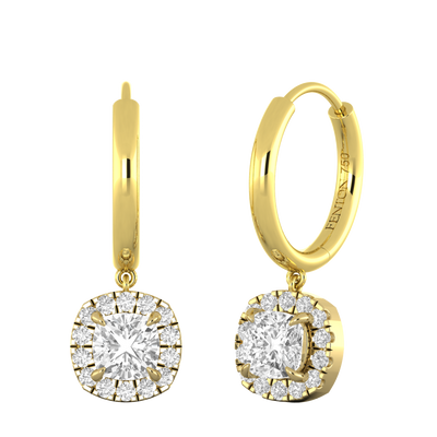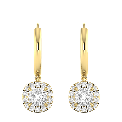 Classic Drop Cushion Solar Diamond 18K Yellow Gold Earrings