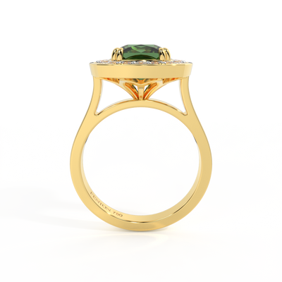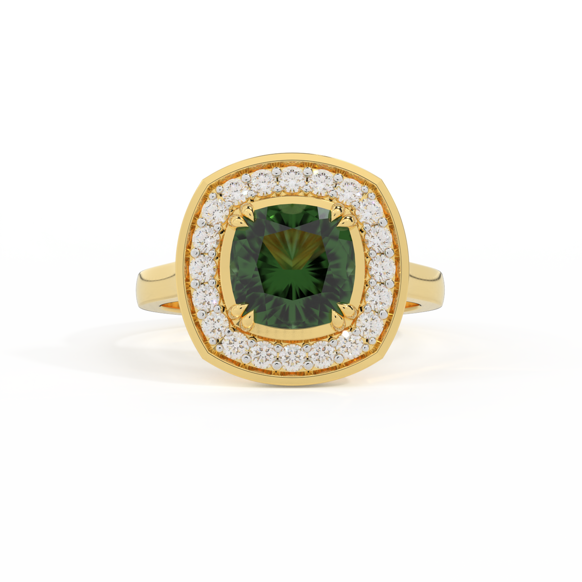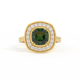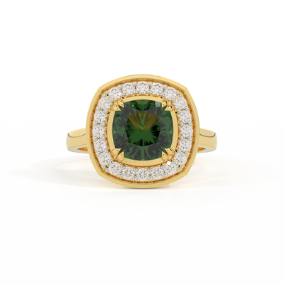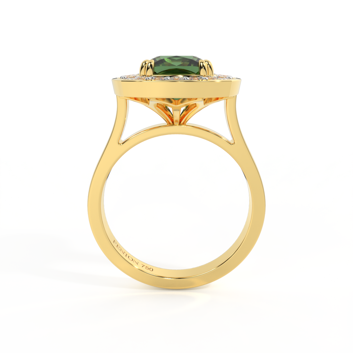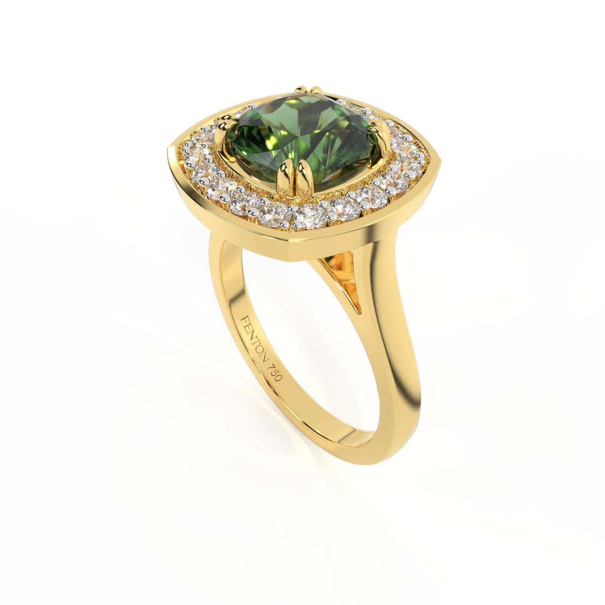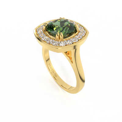 Deco Cushion Green Sapphire 18K Yellow Gold Ring