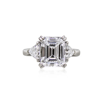 Emerald-cut diamond single-stone ring, the diamond weighing 3.55cts with triangular diamond shoulders, mounted in 18ct white gold, size I½, with GIA certificate no. 8567311 dated 11th December 2023 stating the diamond is E colour, VVS1 clarity