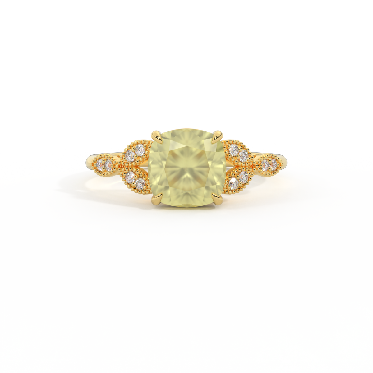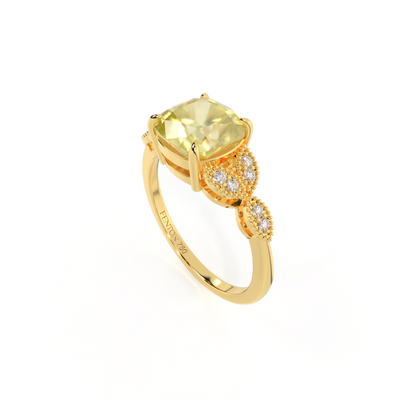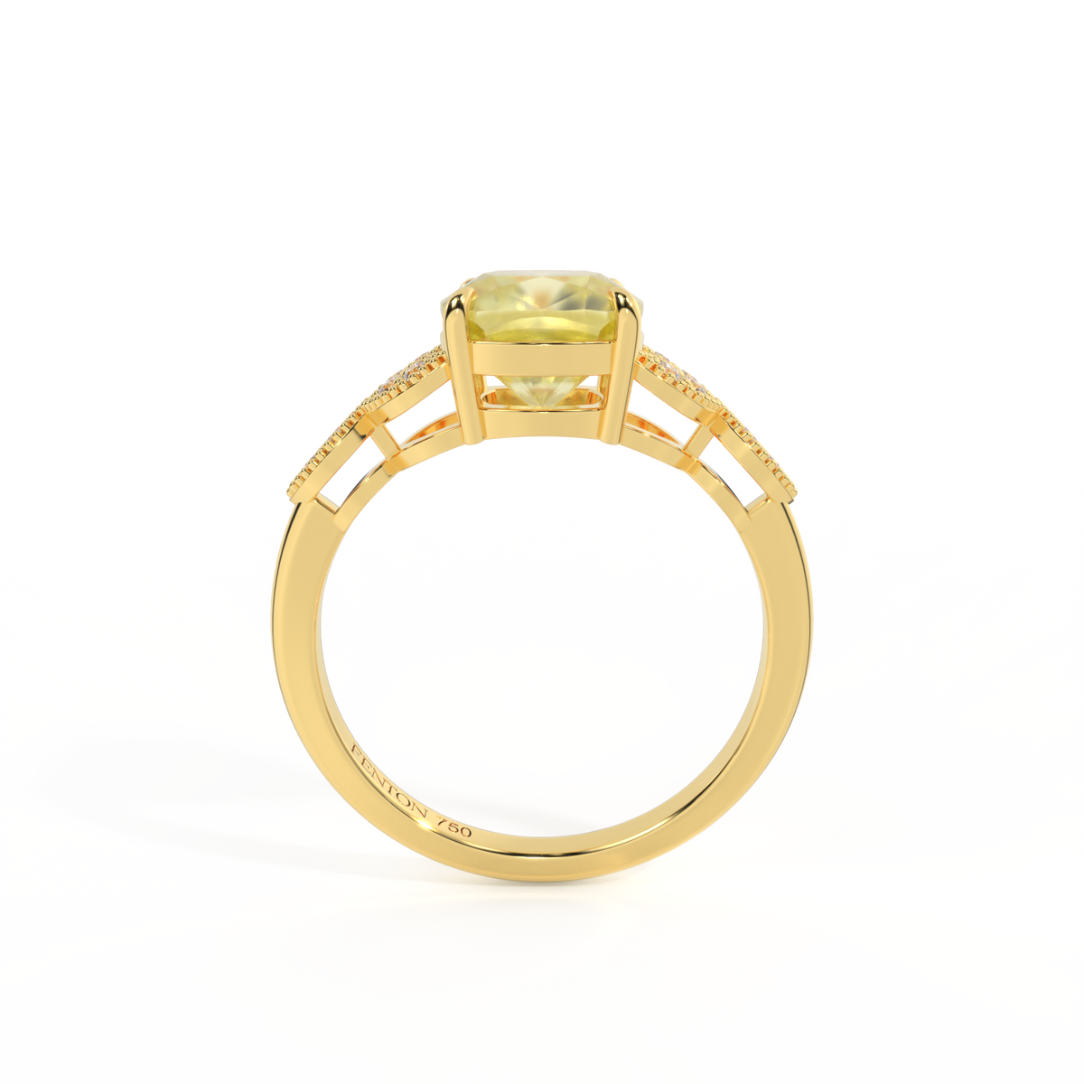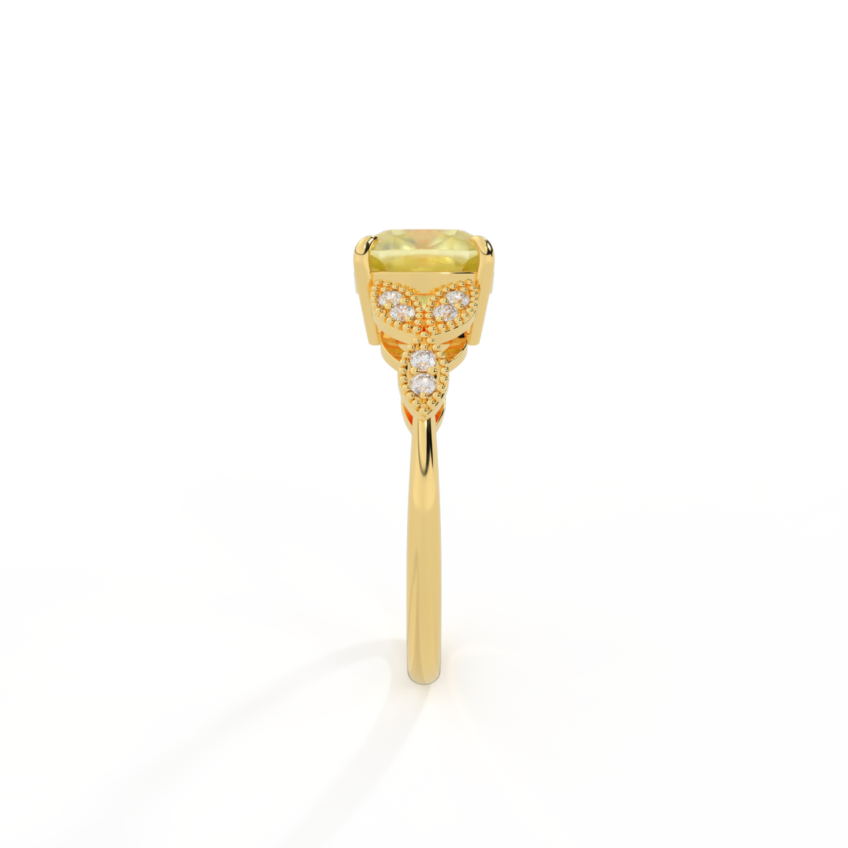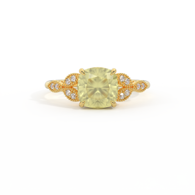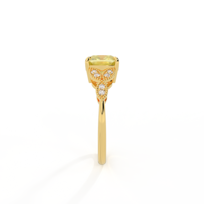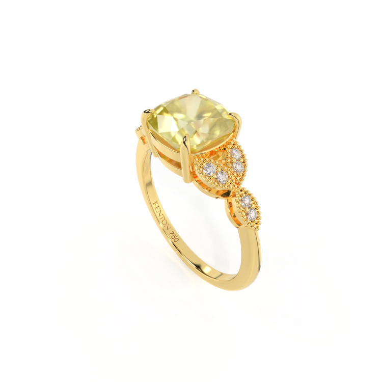 Floral Cushion Yellow Sapphire 18K Yellow Gold Ring