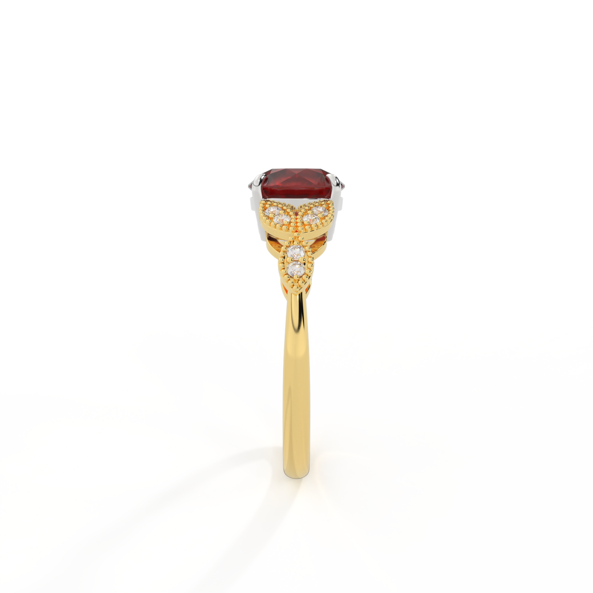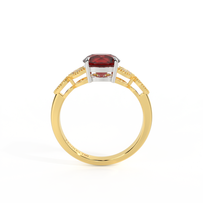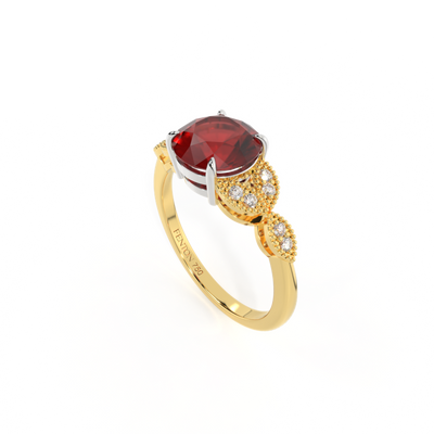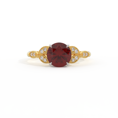 Floral Round Garnet 18K Yellow Gold Ring