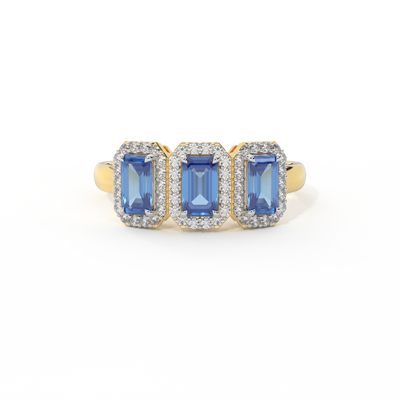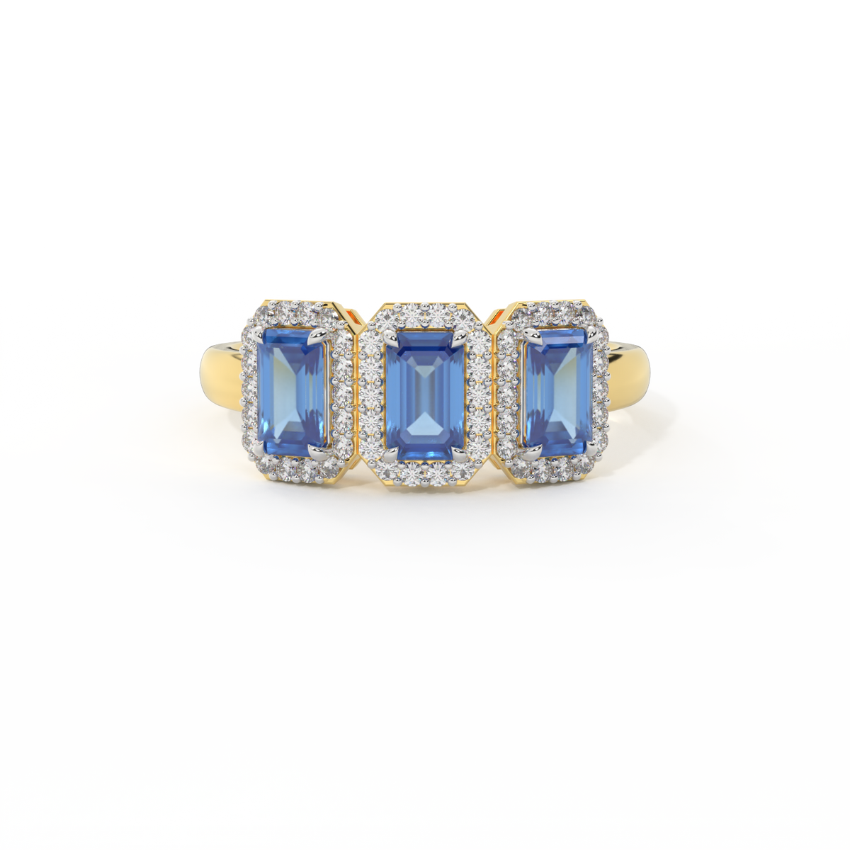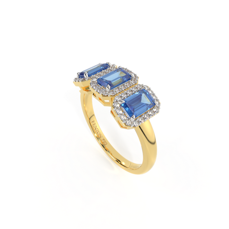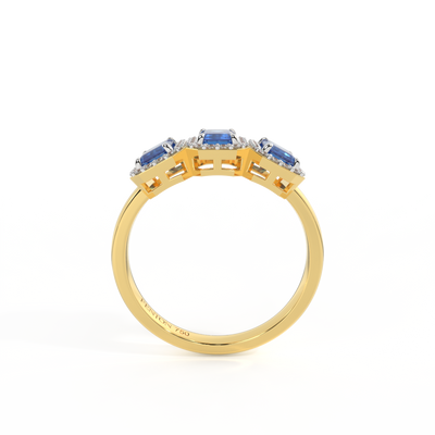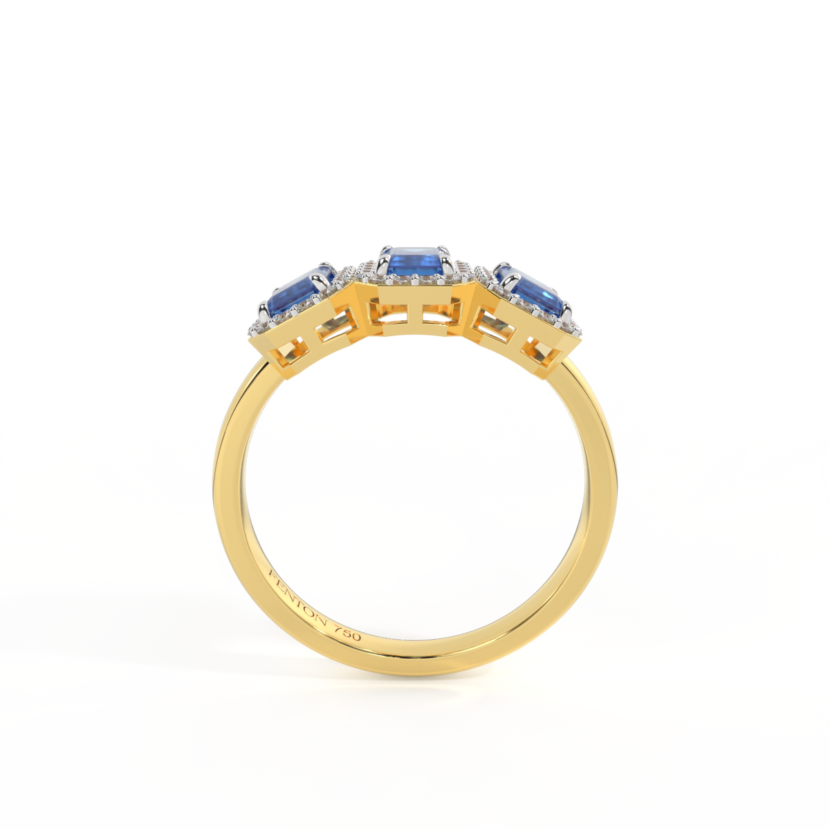 Garland Emerald Blue Sapphire 18K Yellow Gold Ring