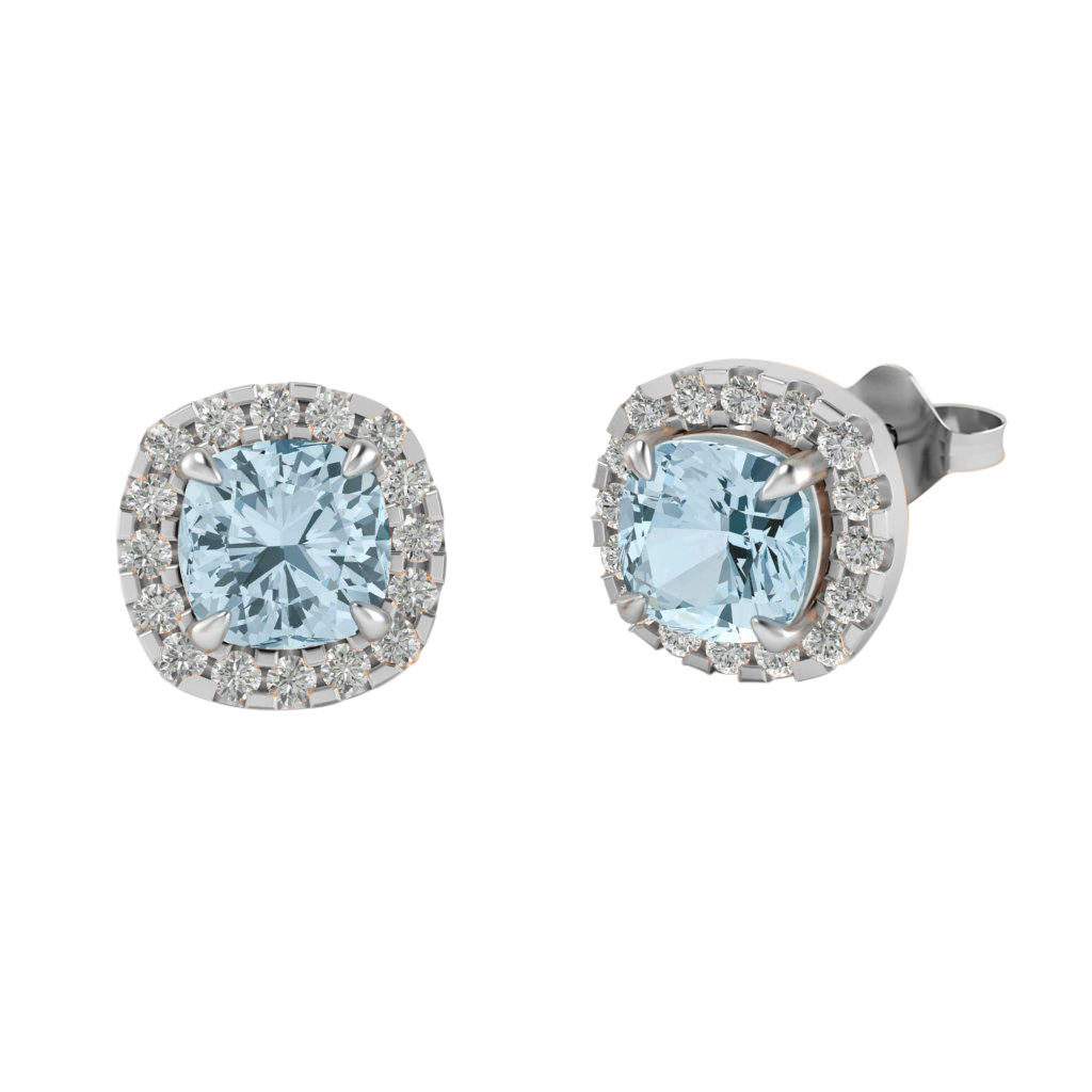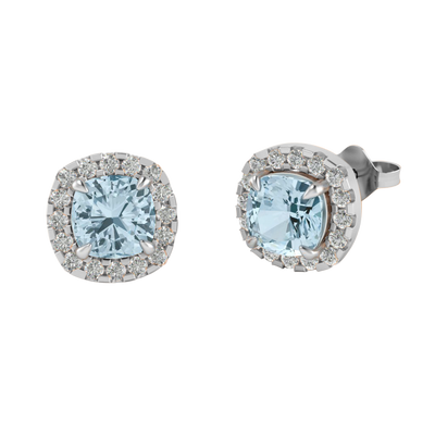 Halo Stud Cushion Aquamarine 18K White Gold Earrings