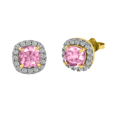 Halo Stud Cushion Pink Sapphire 18K Yellow Gold Earrings