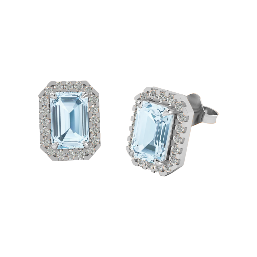 Halo Stud Emerald Aquamarine 18K White Gold Earrings