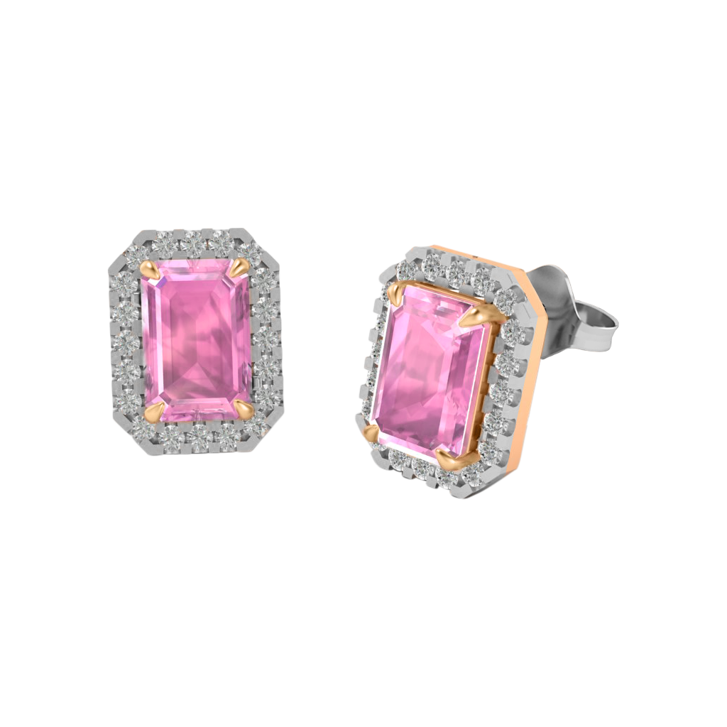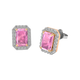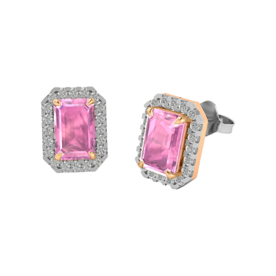 Halo Stud Emerald Pink Sapphire 18K Rose Gold Earrings