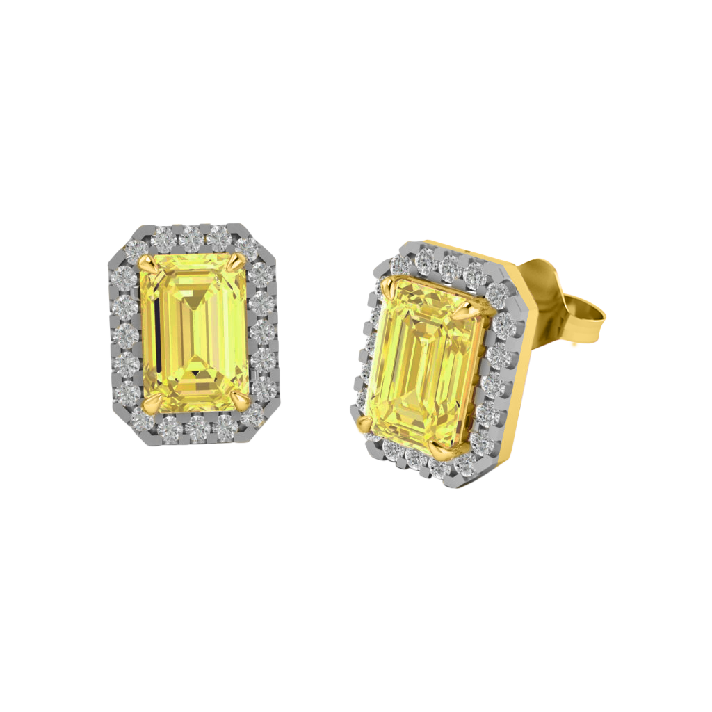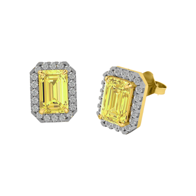 Halo Stud Emerald Yellow Sapphire 18K Yellow Gold Earrings
