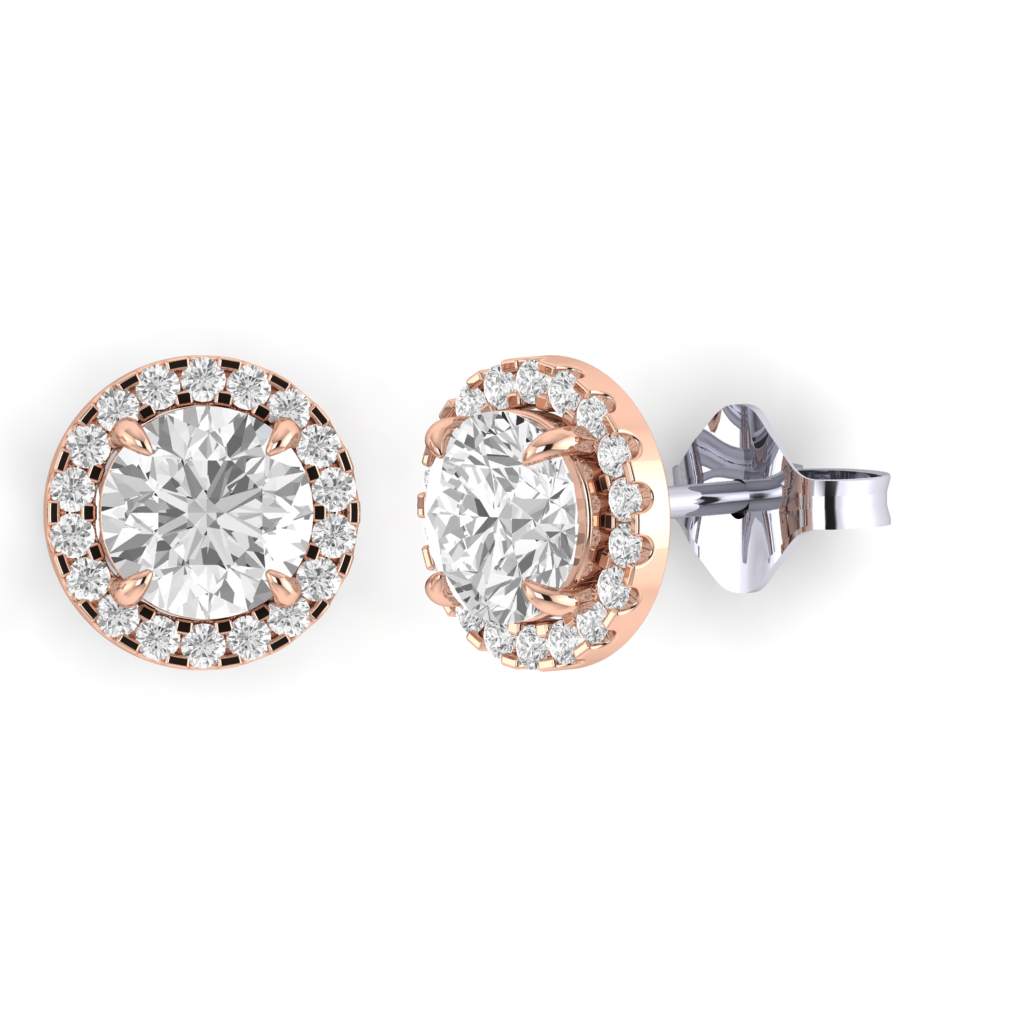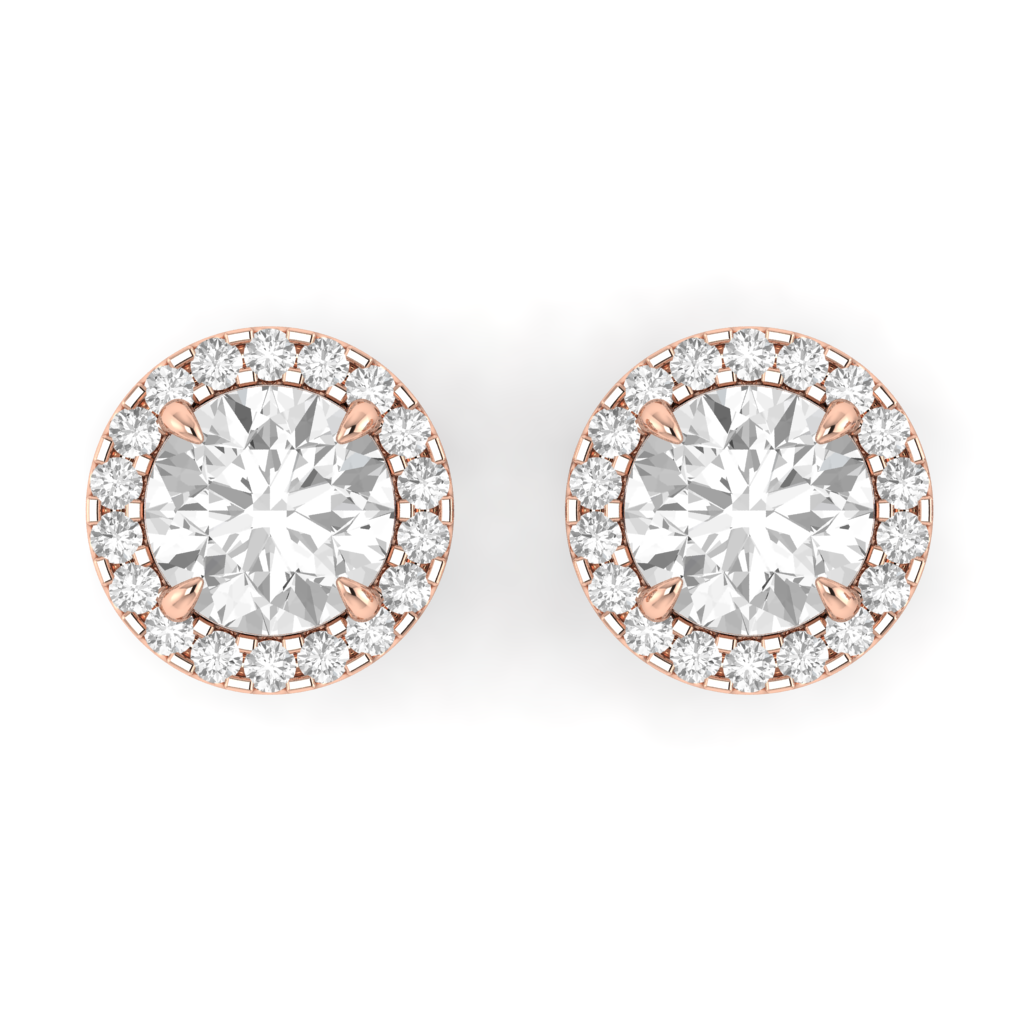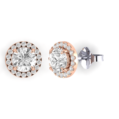 Halo Stud Round Solar Diamond 18K Rose Gold Earrings