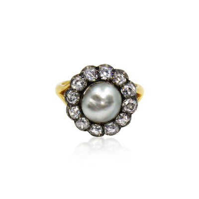Antique Victorian Natural Pearl and Diamond Cluster Ring