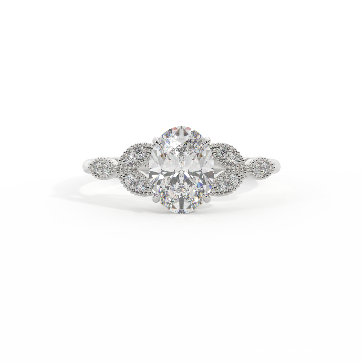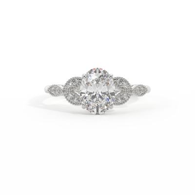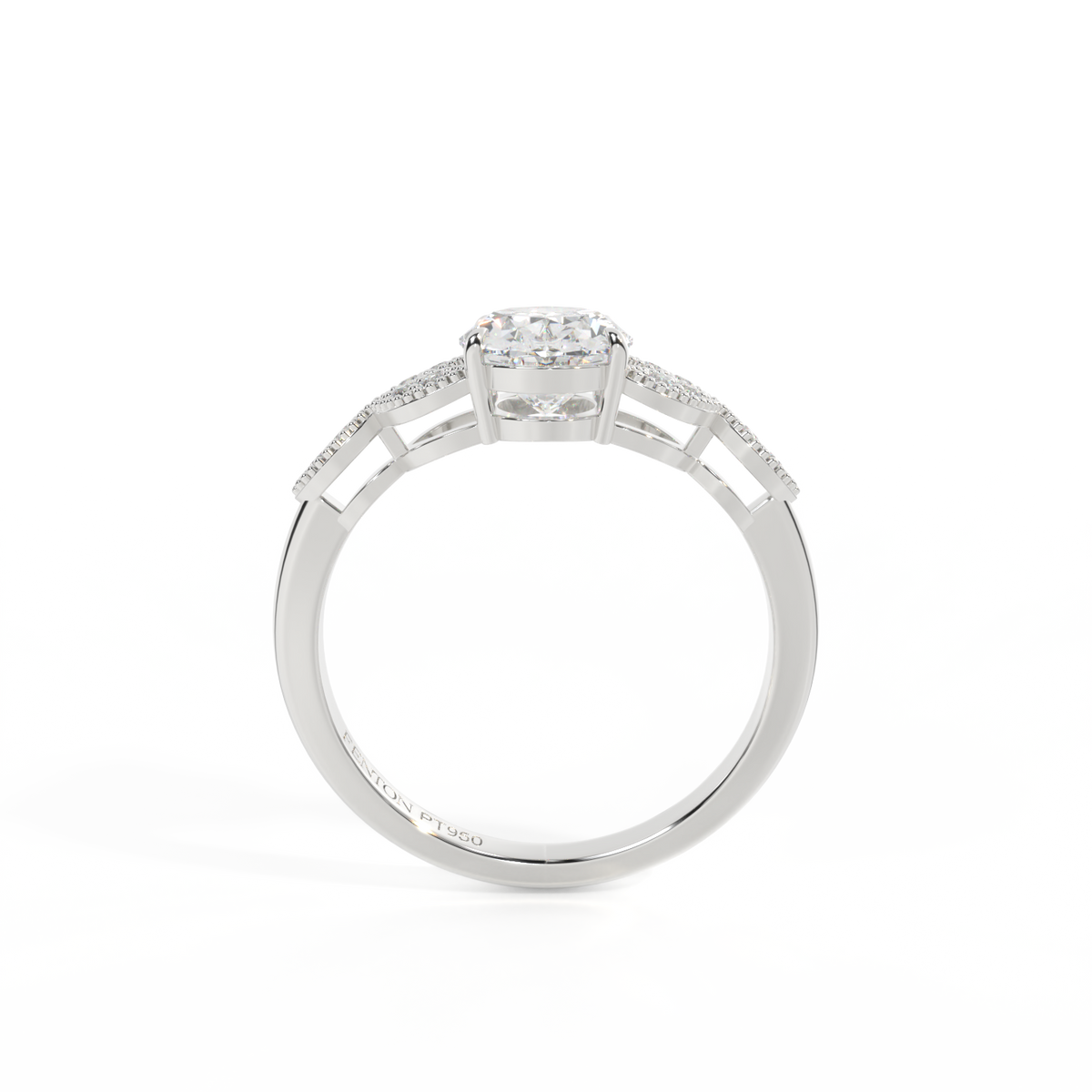 Lab Grown Solar Diamond Floral Oval Cut Diamond Platinum Ring