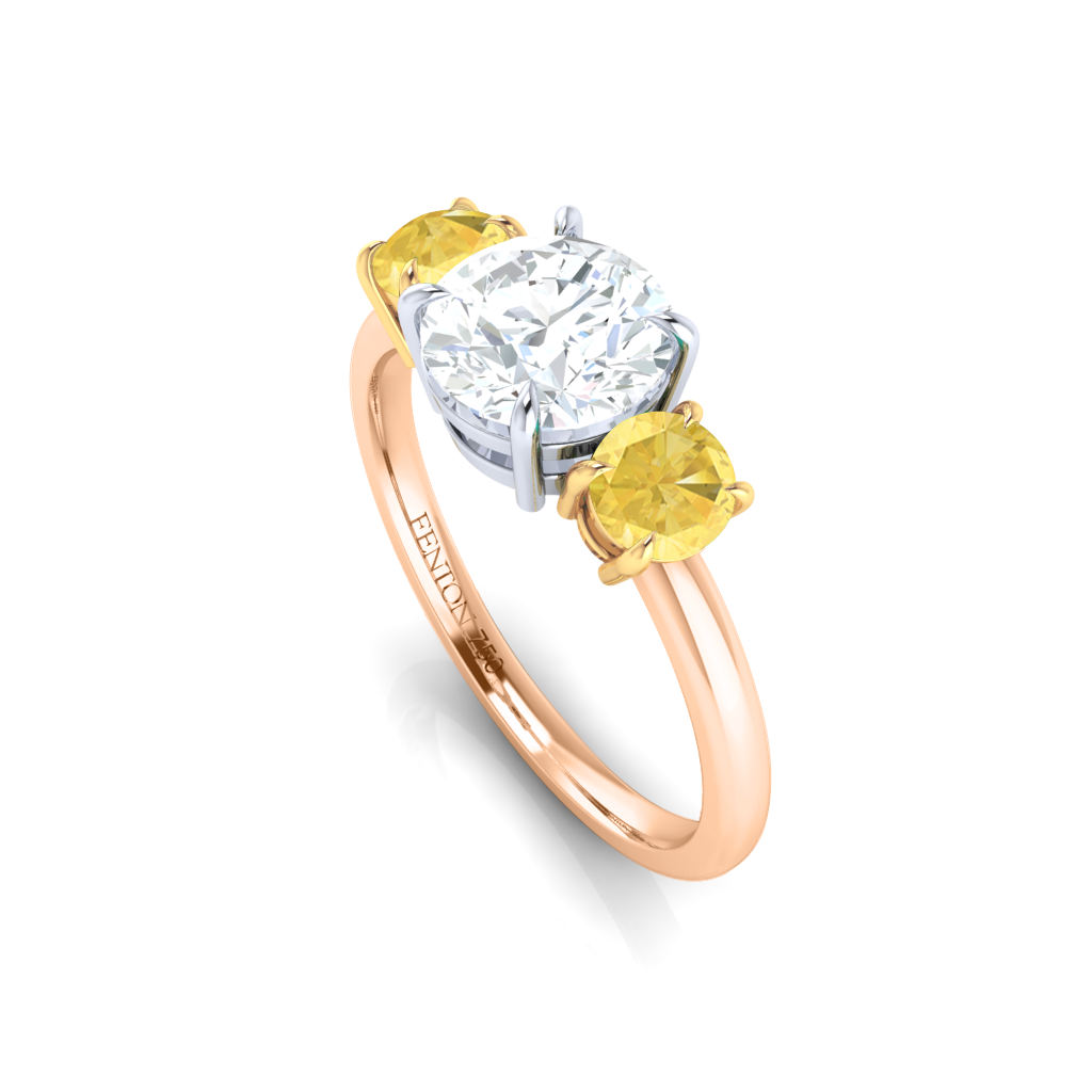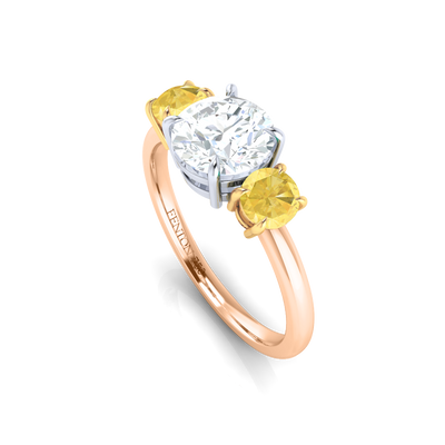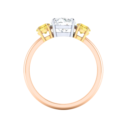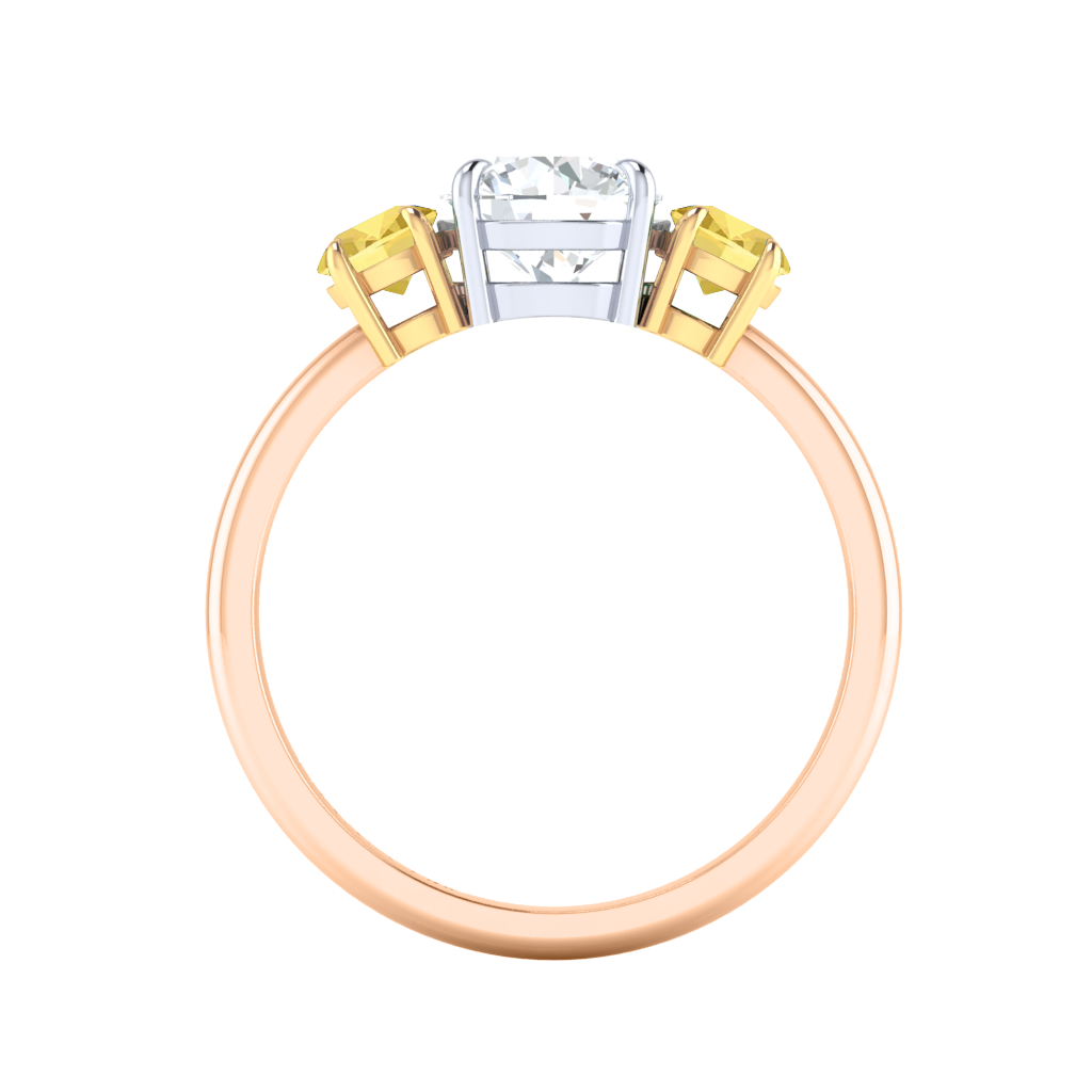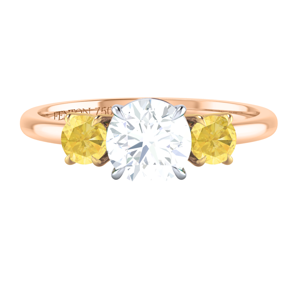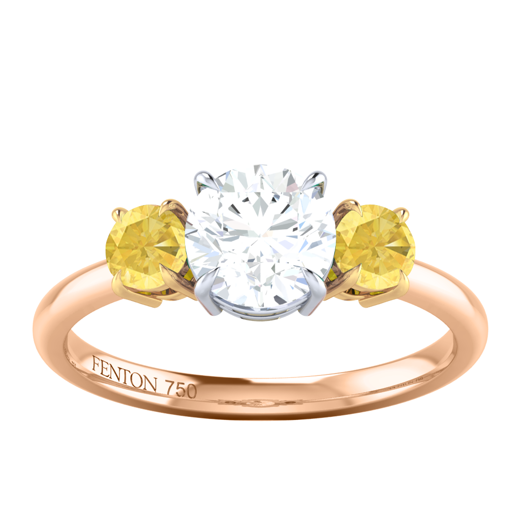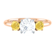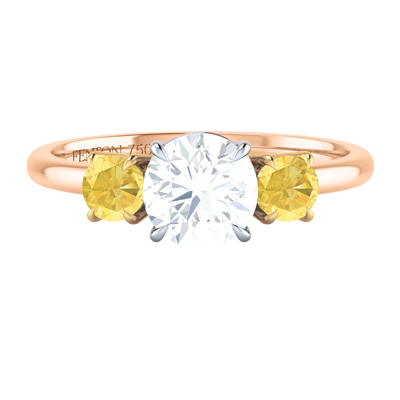 Lab Grown Solar Diamond Trilogy Round Cut Diamond and Yellow Sapphire 18k Rose Gold Ring