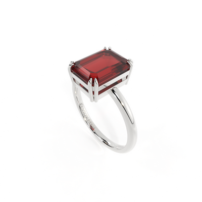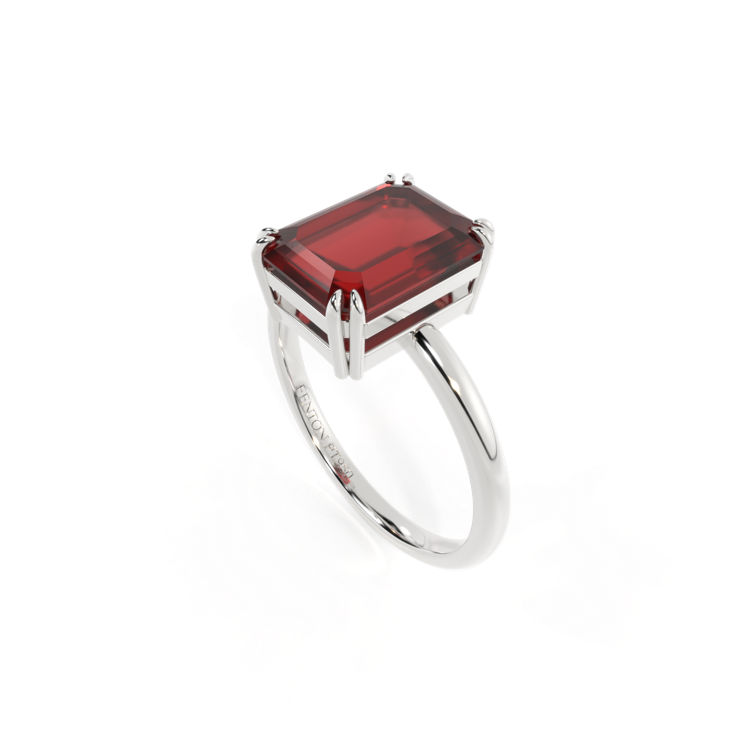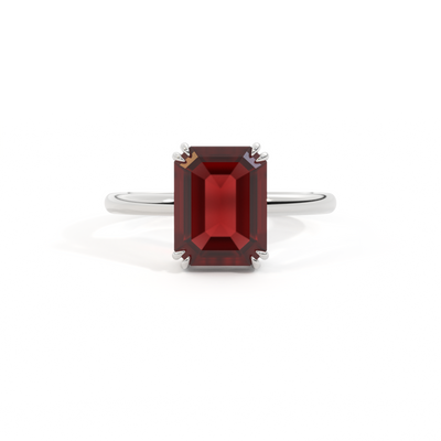 Solitaire Emerald Garnet Platinum Ring