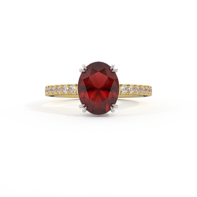 Solitaire Oval Garnet 18K Yellow Gold Ring