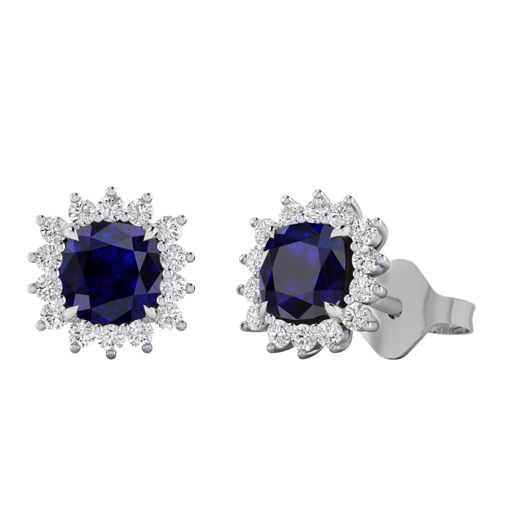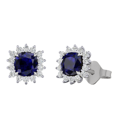 Star Stud Cushion Blue Sapphire 18K White Gold Earrings
