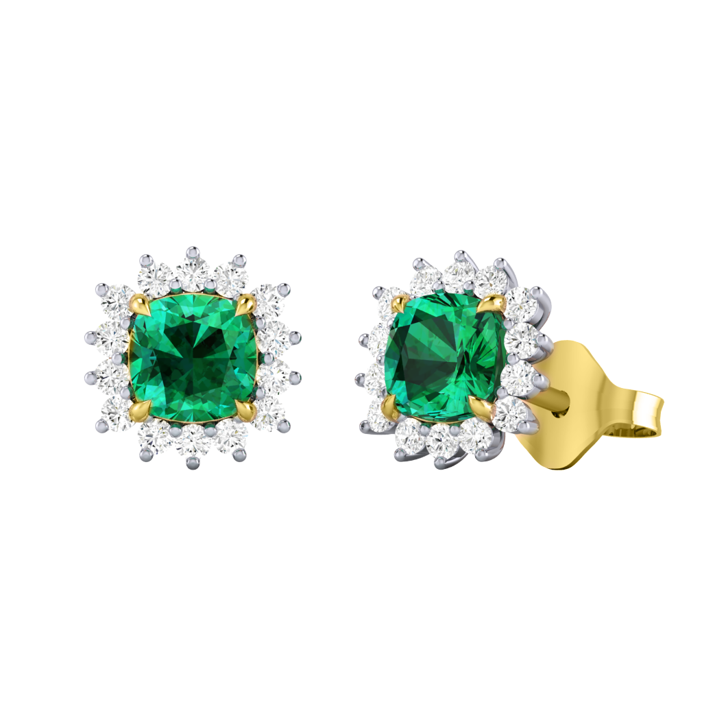Star Stud Cushion Emerald 18K Yellow Gold Earrings