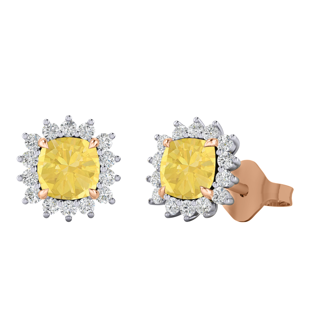 Star Stud Cushion Yellow Sapphire 18K Rose Gold Earrings