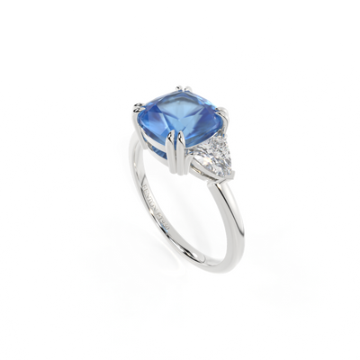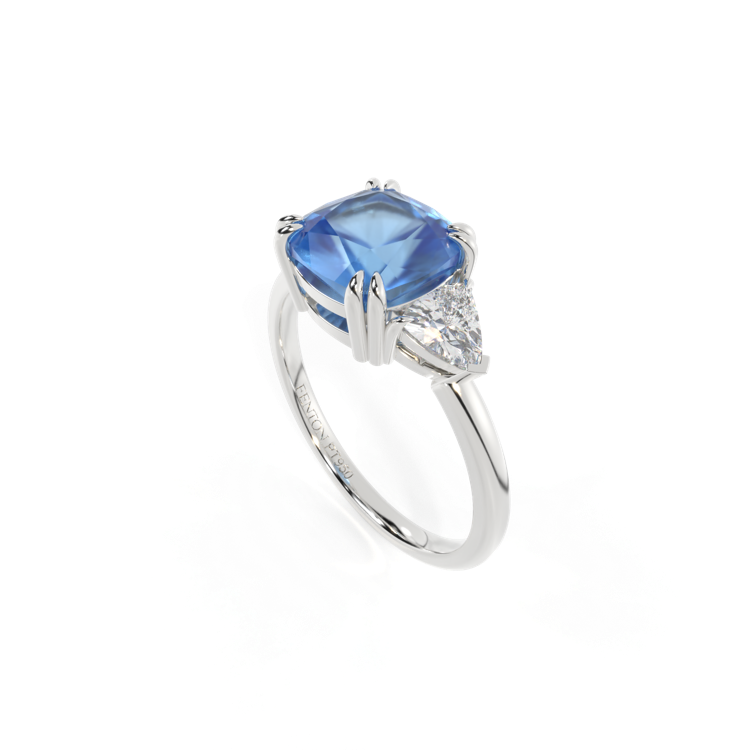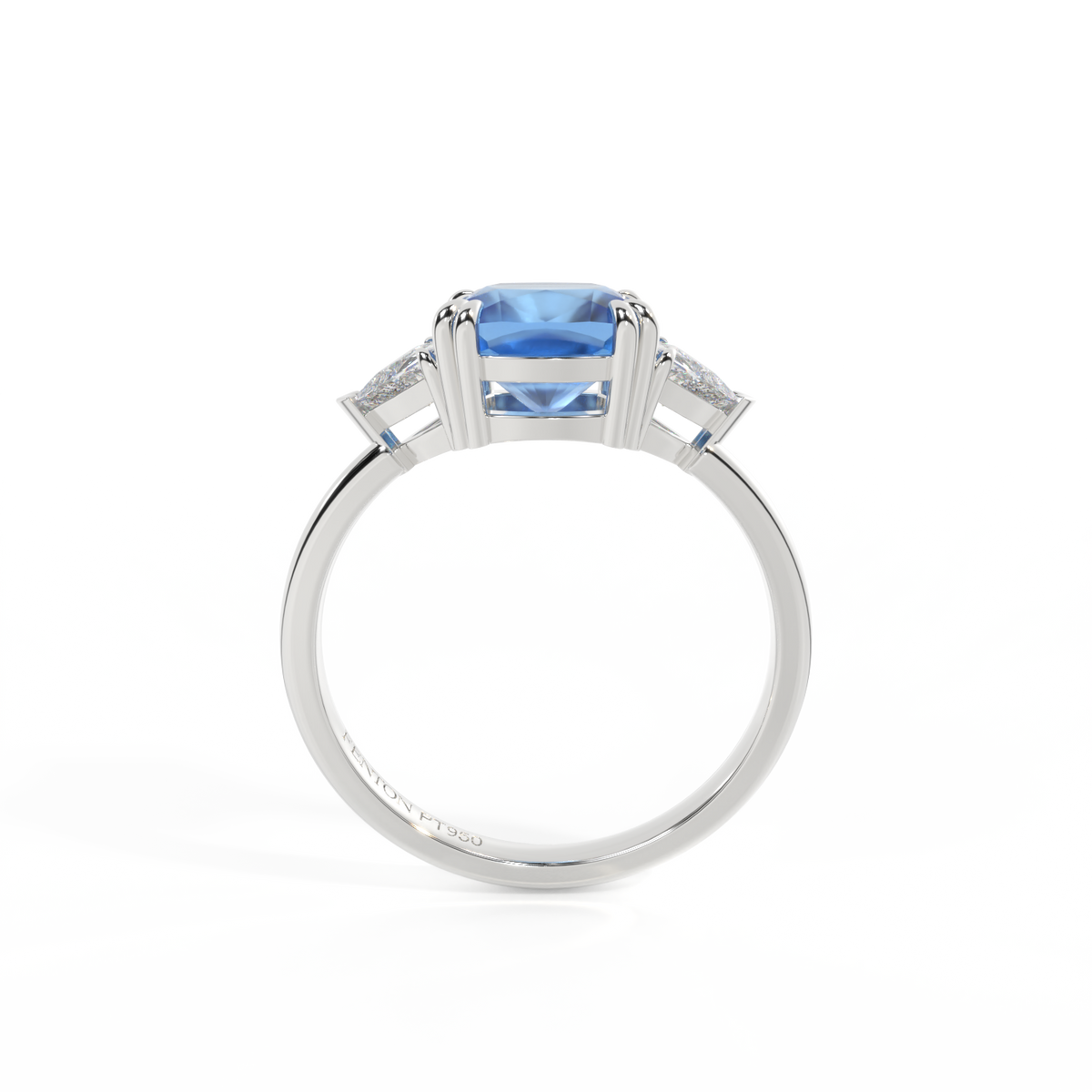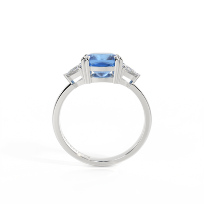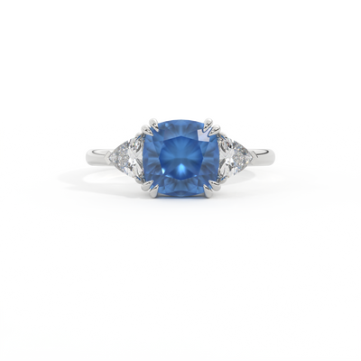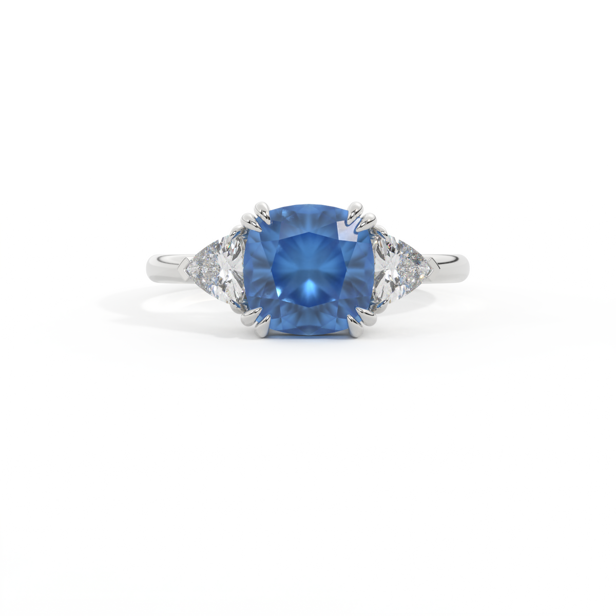 Trilogy Cushion Blue Sapphire Platinum Ring