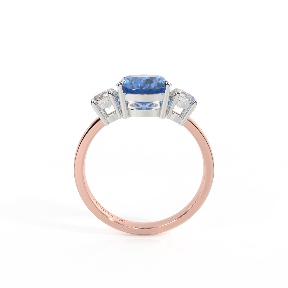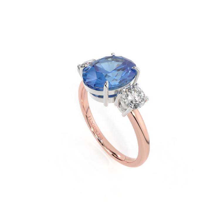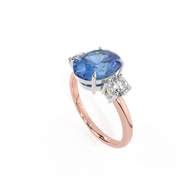 Trilogy Oval Blue Sapphire 18K Rose Gold Ring
