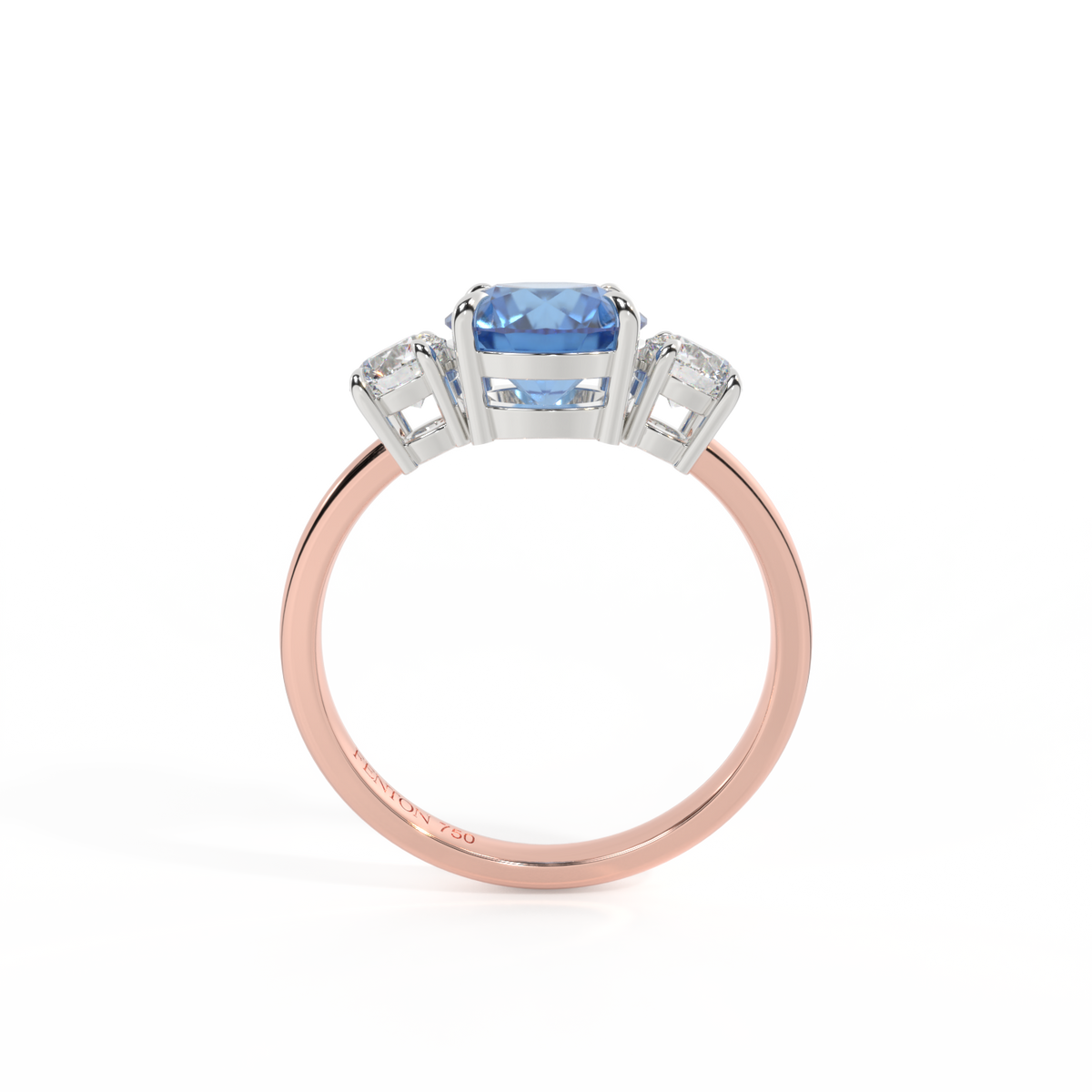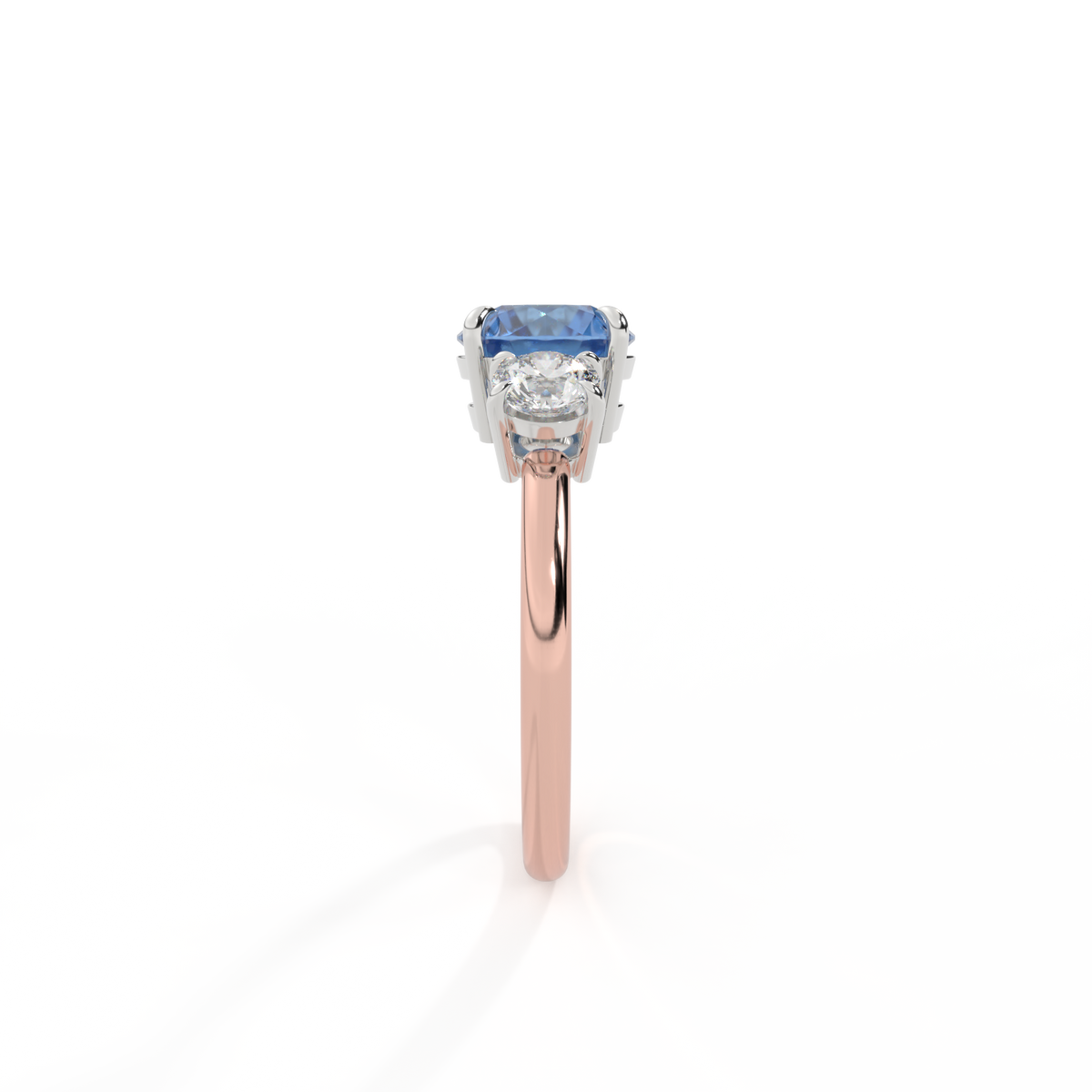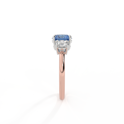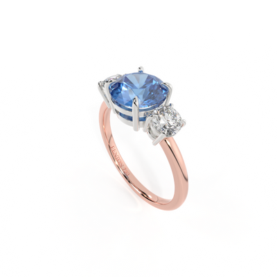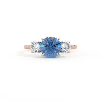Trilogy Round Blue Sapphire 18K Rose Gold Ring