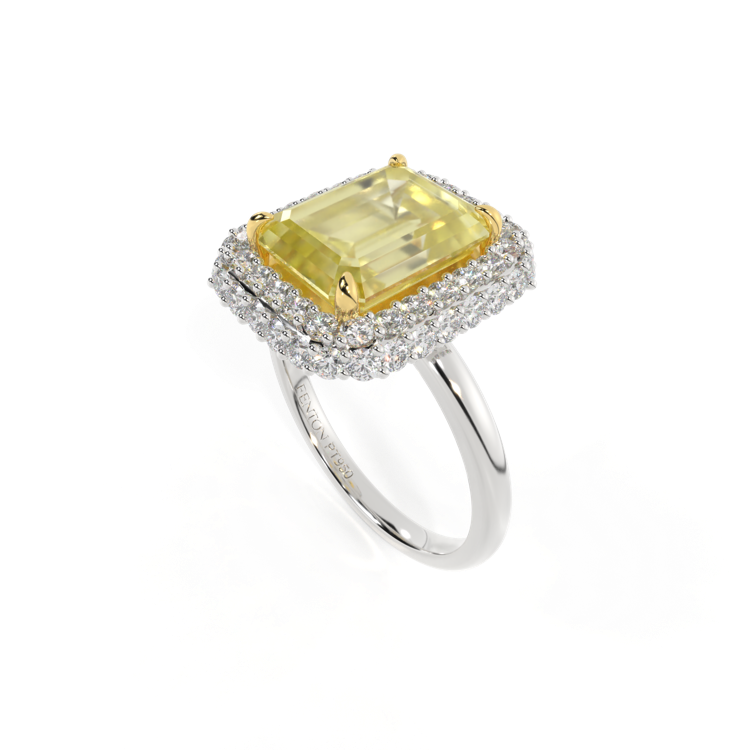 Vintage Emerald Yellow Sapphire Platinum Ring
