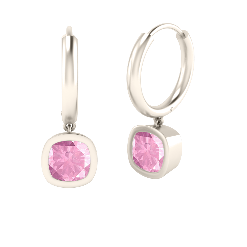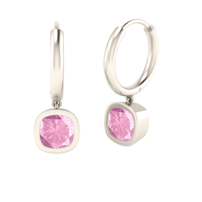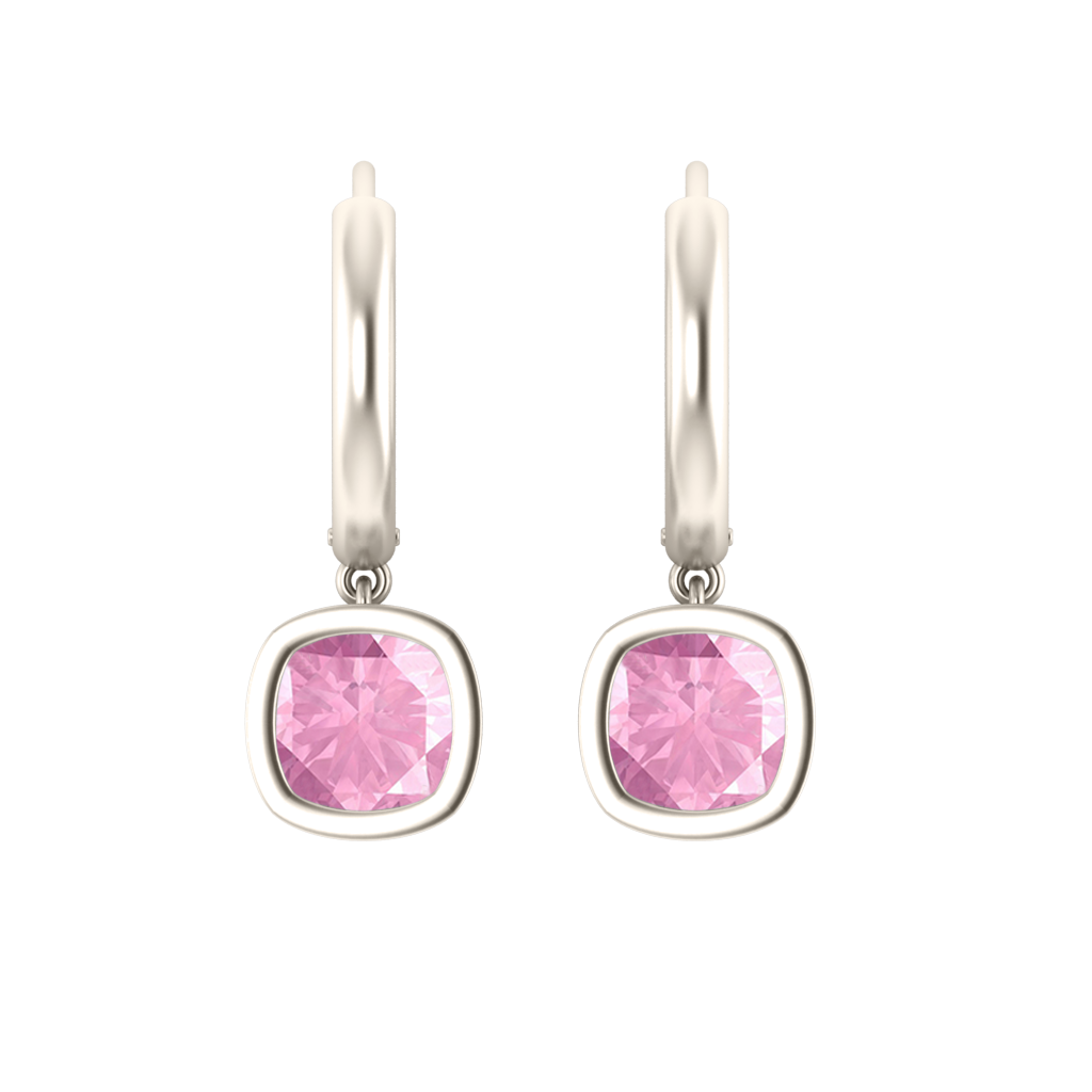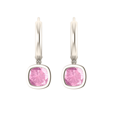 Bezel Drop Cushion Pink Sapphire 18K White Gold Earrings