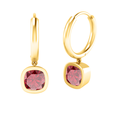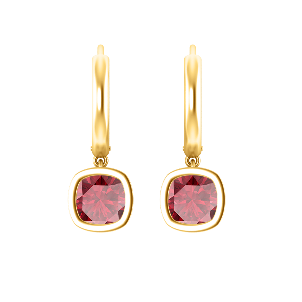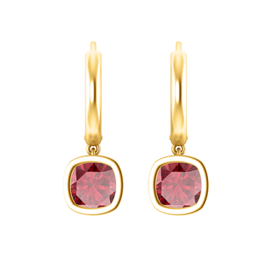 Bezel Drop Cushion Ruby 18K Yellow Gold Earrings