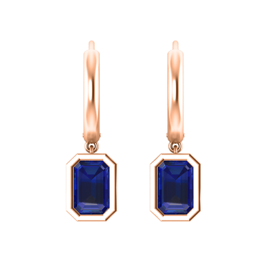 Bezel Drop Emerald Blue Sapphire 18K Rose Gold Earrings