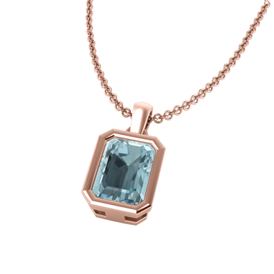 Bezel Emerald Cut Aquamarine 18K Rose Gold Pendant Necklace