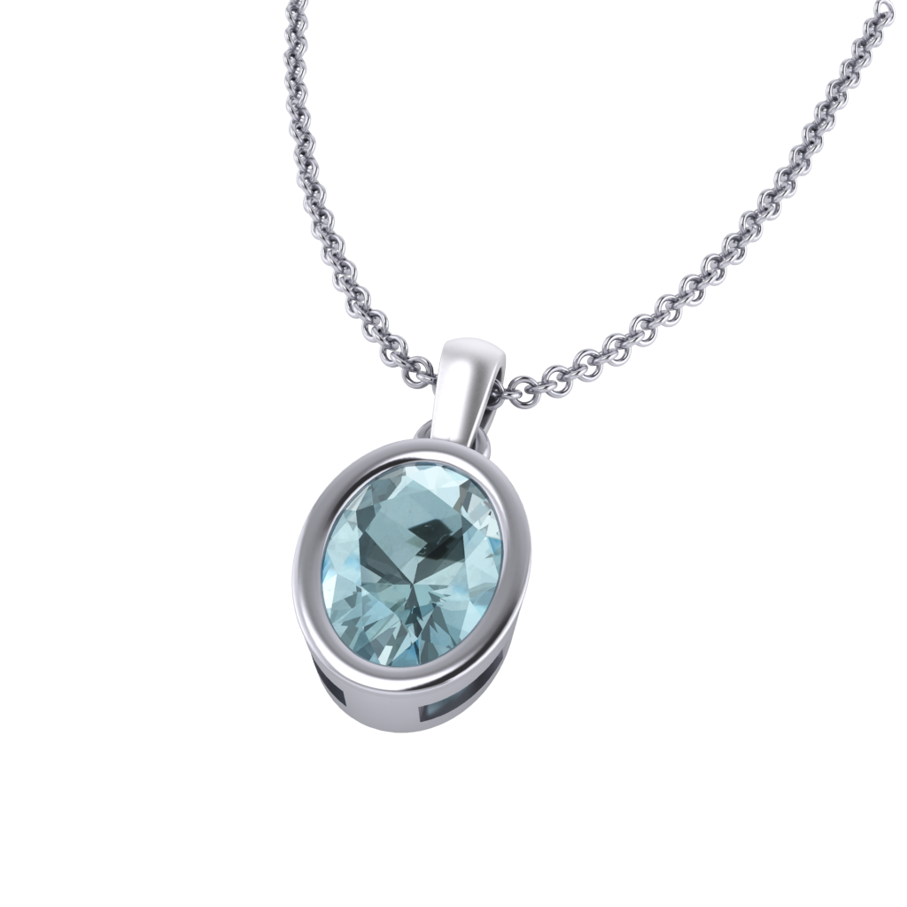 Die Bezel Pendant Necklace verbindet Minimalismus mit moderner Eleganz. Der Oval geschliffene Aquamarin Anhänger ist in einer 18 Karat Weißgold Umrandung eingefasst und balanciert mühelos an einer passenden Kette.
