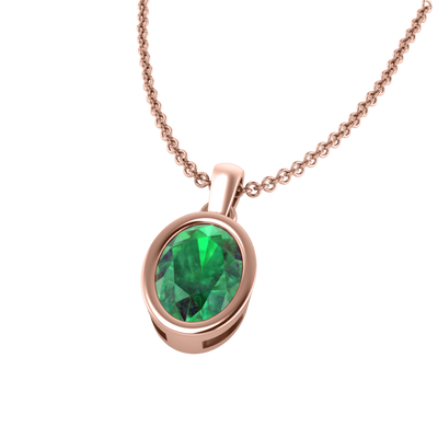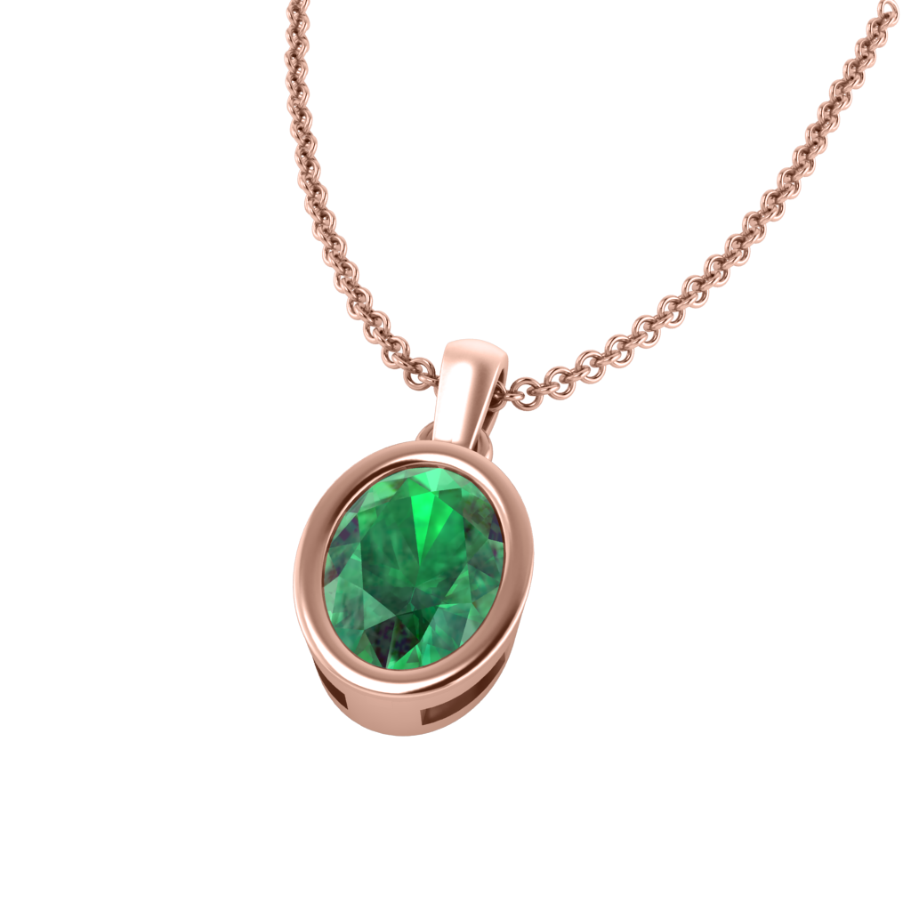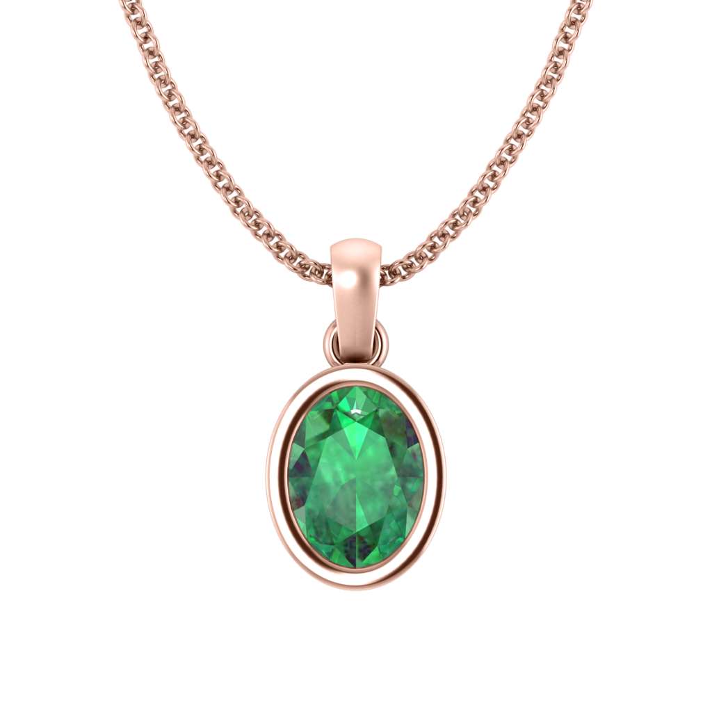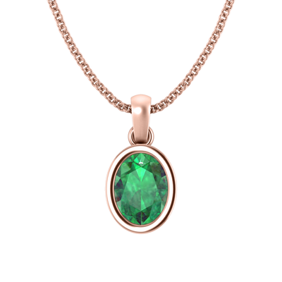 Die Bezel Pendant Necklace verbindet Minimalismus mit moderner Eleganz. Der Oval geschliffene Smaragd Anhänger ist in einer 18 Karat Roségold Umrandung eingefasst und balanciert mühelos an einer passenden Kette.