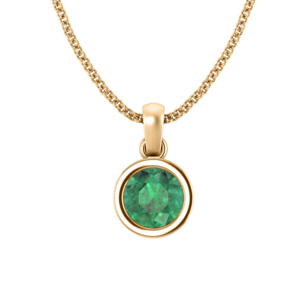 Die Bezel Pendant Necklace verbindet Minimalismus mit moderner Eleganz. Der Runden geschliffene Smaragd Anhänger ist in einer 18 Karat Gelbgold Umrandung eingefasst und balanciert mühelos an einer passenden Kette.