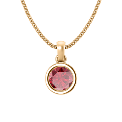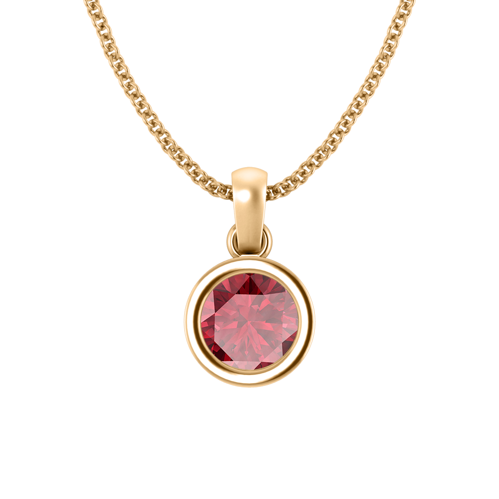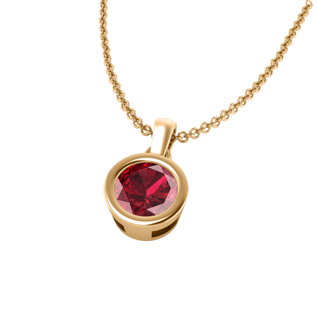 Die Bezel Pendant Necklace verbindet Minimalismus mit moderner Eleganz. Der Runden geschliffene Rubin Anhänger ist in einer 18 Karat Gelbgold Umrandung eingefasst und balanciert mühelos an einer passenden Kette.